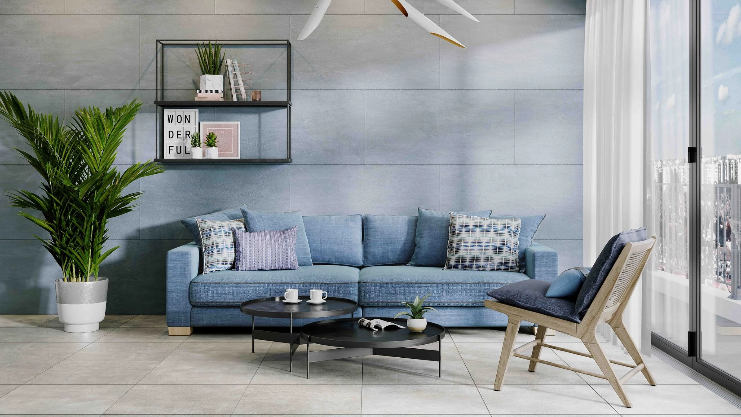 Плитка из керамогранита синего цвета имитирующая рисунок и текстуру натуральных материалов