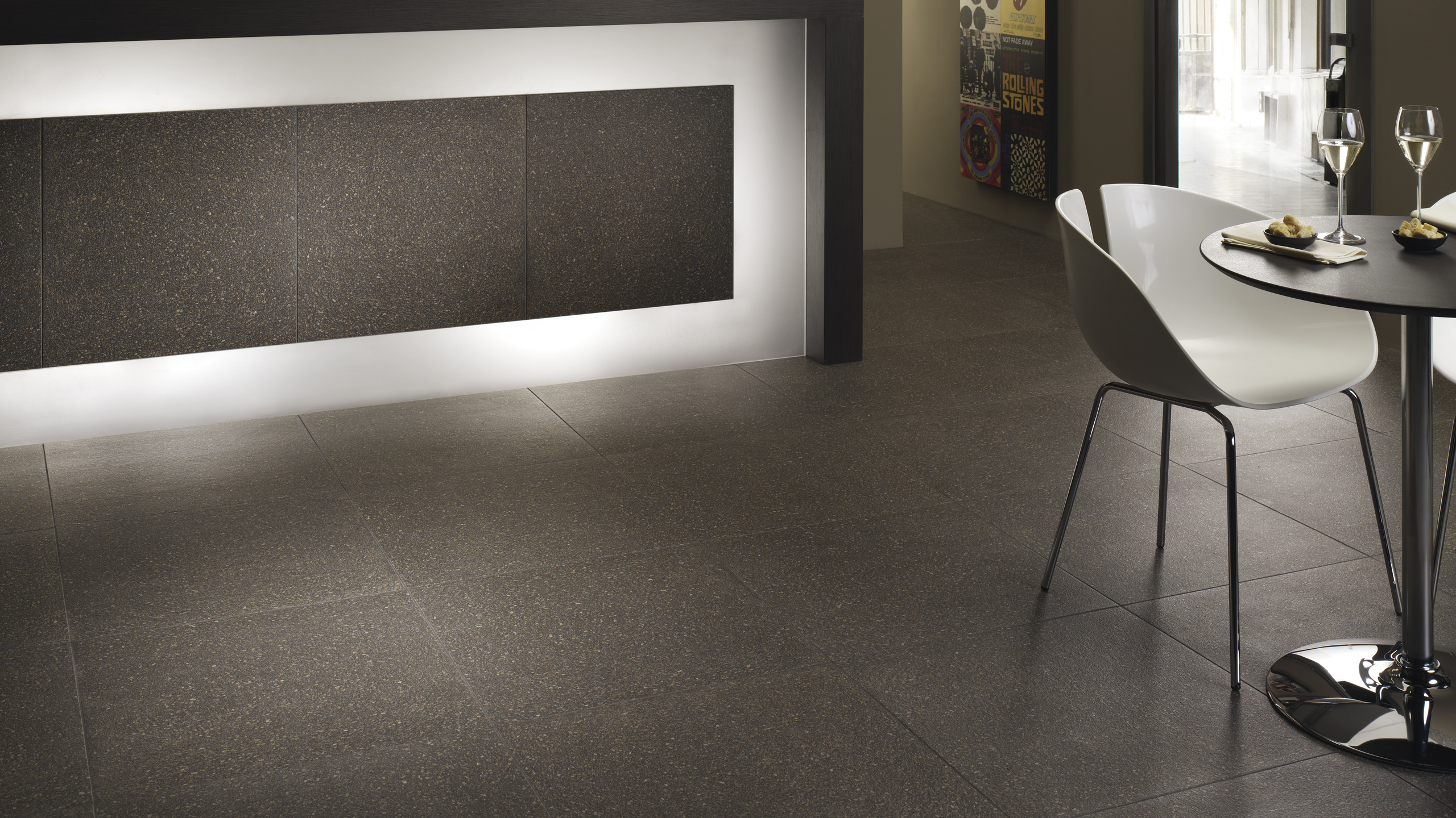 Плитка из керамогранита серого цвета имитирующая рисунок и текстуру натуральных материалов