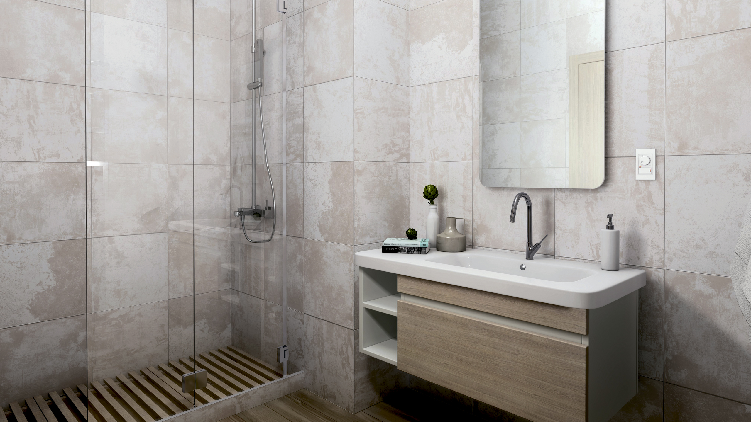 Плитка из керамогранита для ванной имитирующая рисунок и текстуру натурального материала