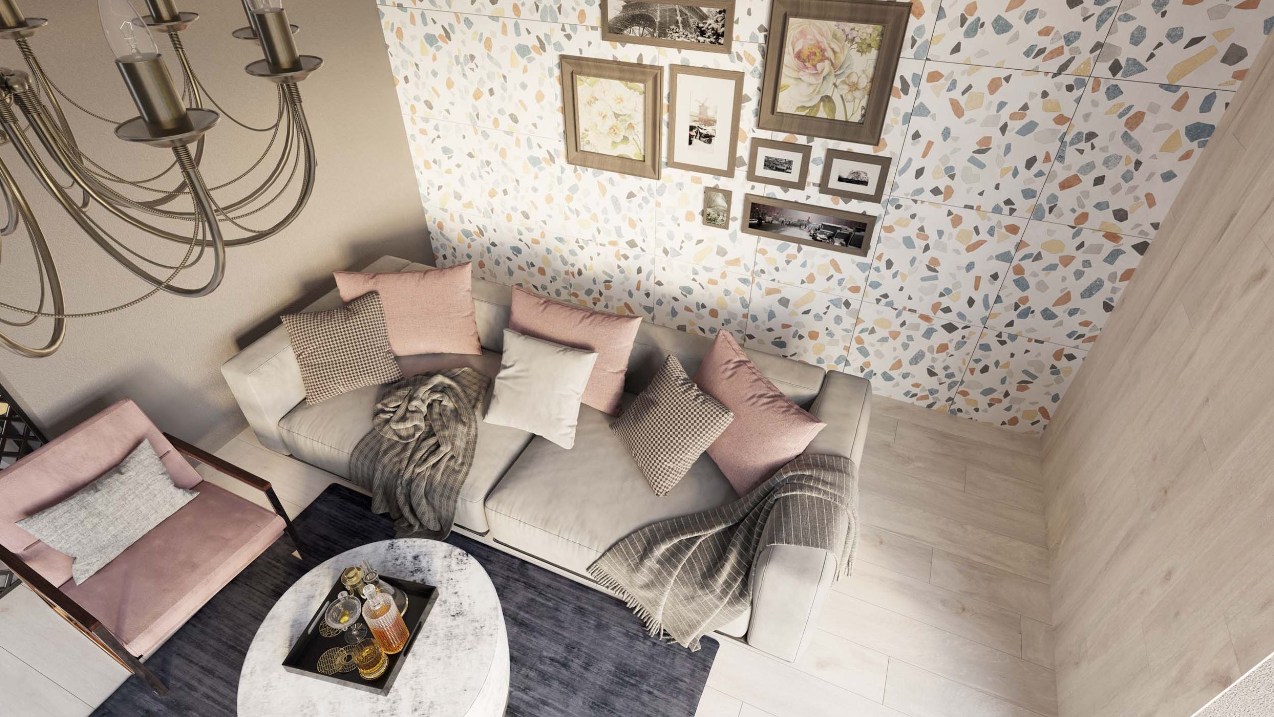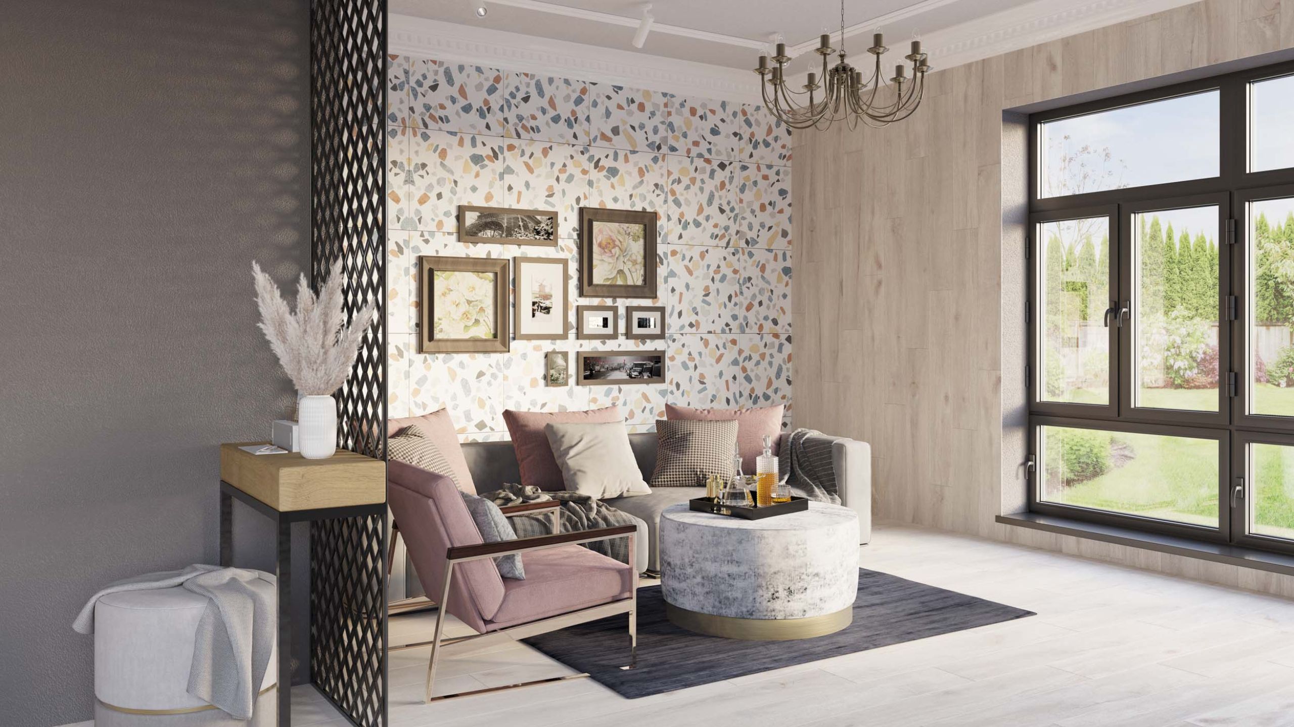 - «милота» — отражается во всем, от текстиля в мелких деталях до сувениров, интересного кресла или оригинального ковра — это образ буквально вырванный из сказки — поможет в оформлении и отделка пола, например, керамогранит из коллекции Sherwood.