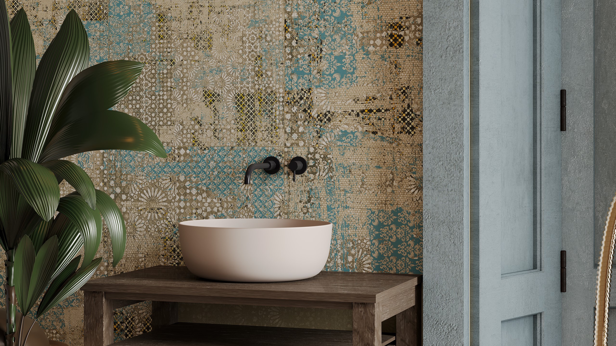 Но подобные текстуры встречаются и среди керамогранитных поверхностей. Существует коллекция Graffito. Ее название — отсылка к технике нанесения штукатурки, при котором на керамическую поверхность наносятся два отличающихся по цвету красящих материала. Для создания уникального рисунка верхний слой дополнительно царапают. Именно эта необычная техника, зародившаяся еще в эпоху итальянского Возрождения, воссоздана в одноименном керамограните.