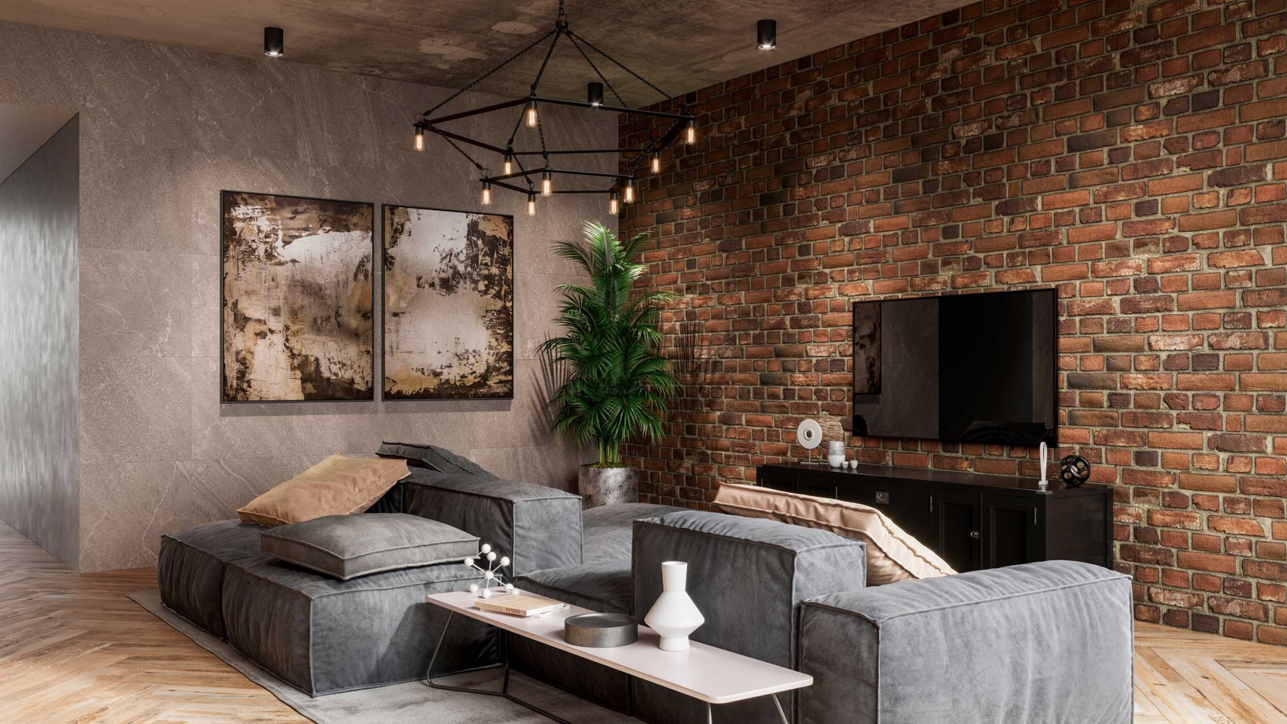 Так, светлые тона визуально расширяют пространство, создают ощущение наполненности воздухом. Стены в сером кирпиче — универсальный вариант. Под него можно подобрать мебель практически любого оттенка. Если в отделке помещения есть черный кирпич, он подчеркнет неординарный дизайн интерьера комнаты.