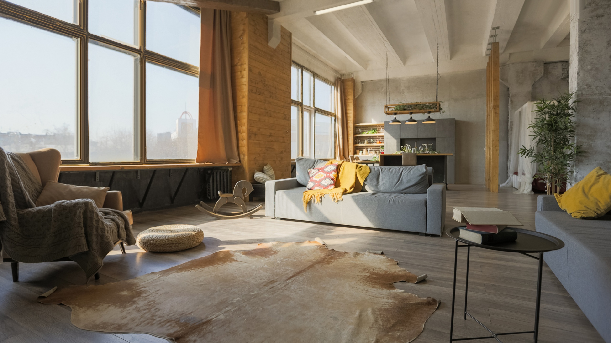 В качестве акцента на диванах и креслах можно разложить декоративные подушки, например, горчичного цвета, шерстяные пледы и покрывала ручной работы.