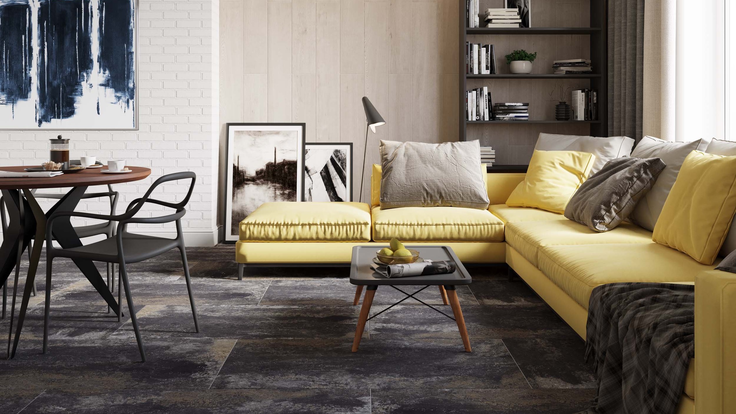 Гостиная. Идеально подойдет диван-кровать и раскладной стол — гостиная легко превращается в спальню. Тумба под ТВ с дополнительным местом хранения — удачное решение для техники и мелочей.