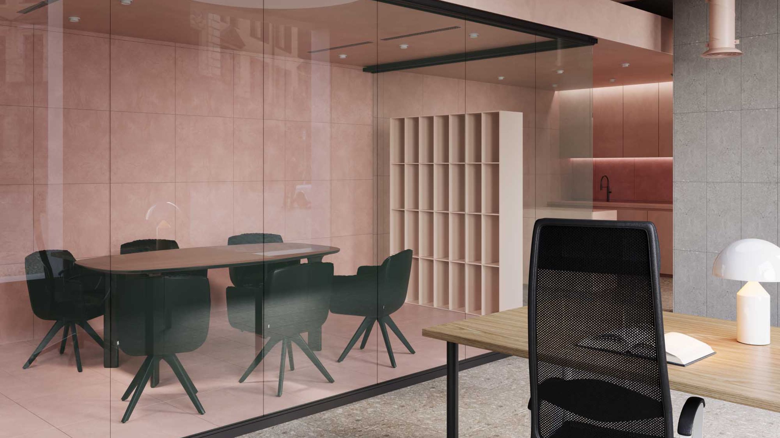 С другой стороны, существует фирменная палитра, часть оттенков которой можно использовать при отделке офиса. В итоге базовые цвета могут быть нейтральными — белый, молочный, светло-серый, а яркие акценты берут из фирменных оттенков.