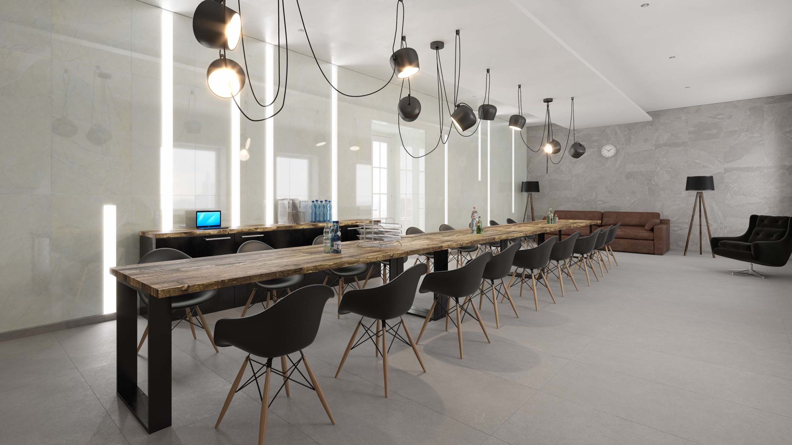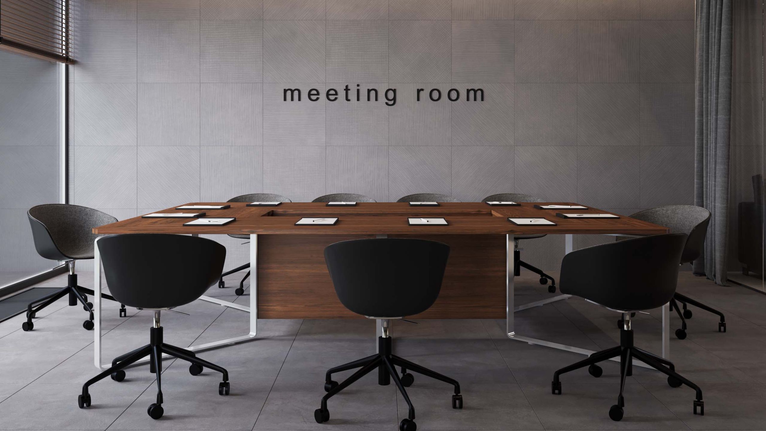 в зал переговоров можно поставить удобные, средней жесткости кресла, диваны с качественной дышащей обивкой, функциональные столы с возможностью зарядки гаджетов, гнездом для флешки;