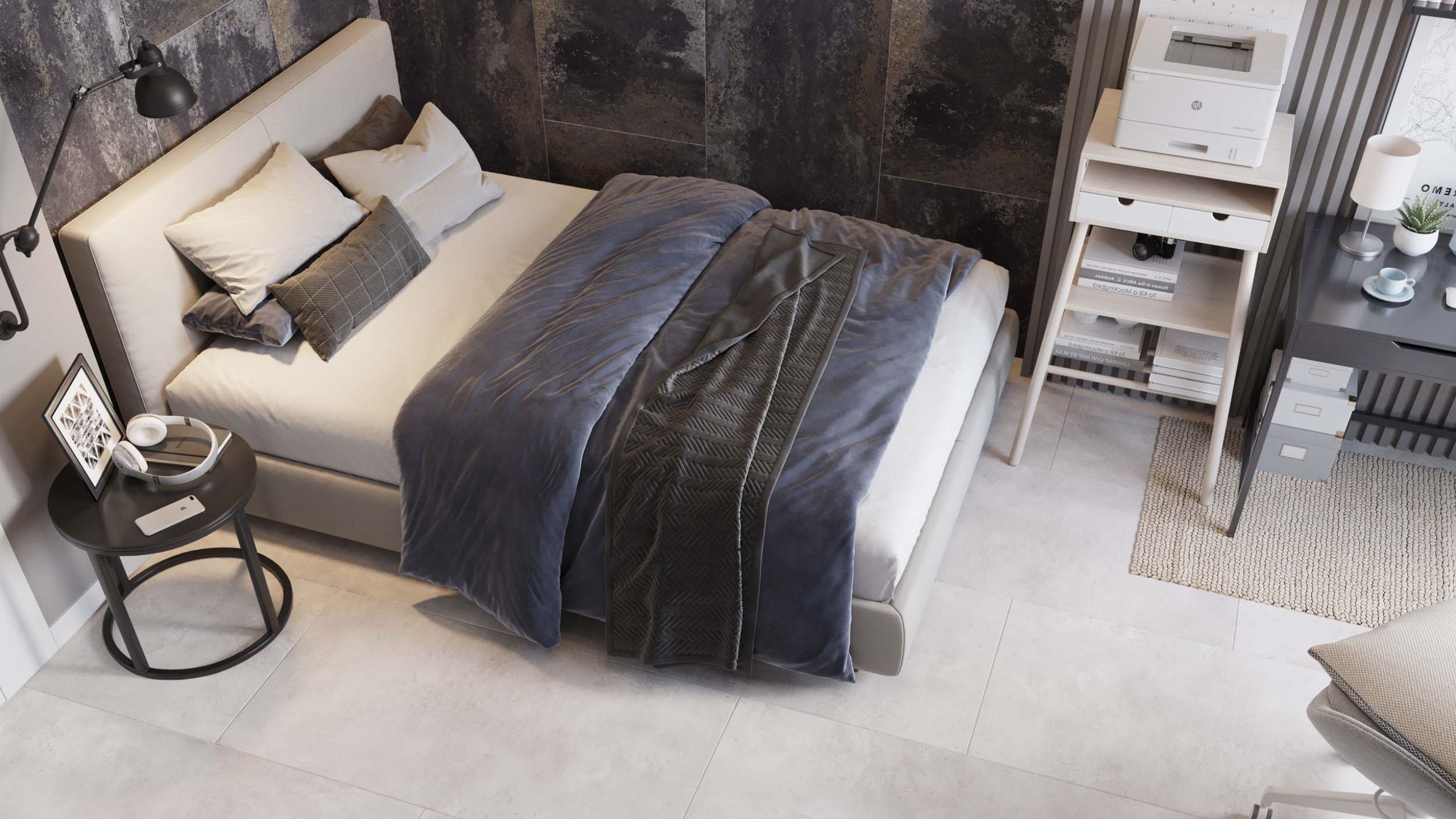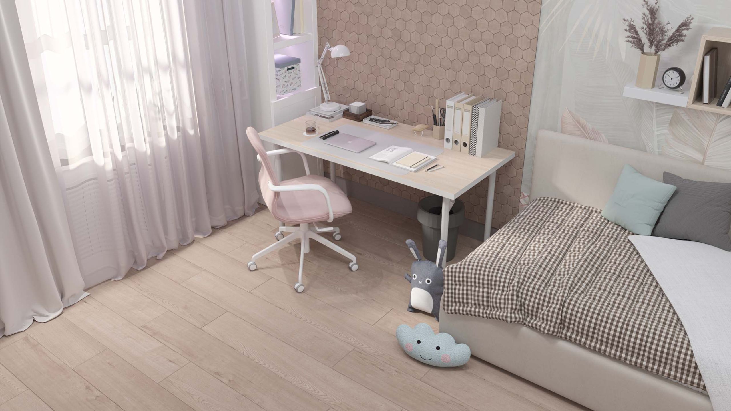Поиграть можно с оттенком пола. Он может быть немного бледнее или ярче, чем основные цвета. Такой акцент визуально выделит пространство подростковой комнаты. Варианты бежевого керамогранита можно подобрать в каталоге компании Estima.