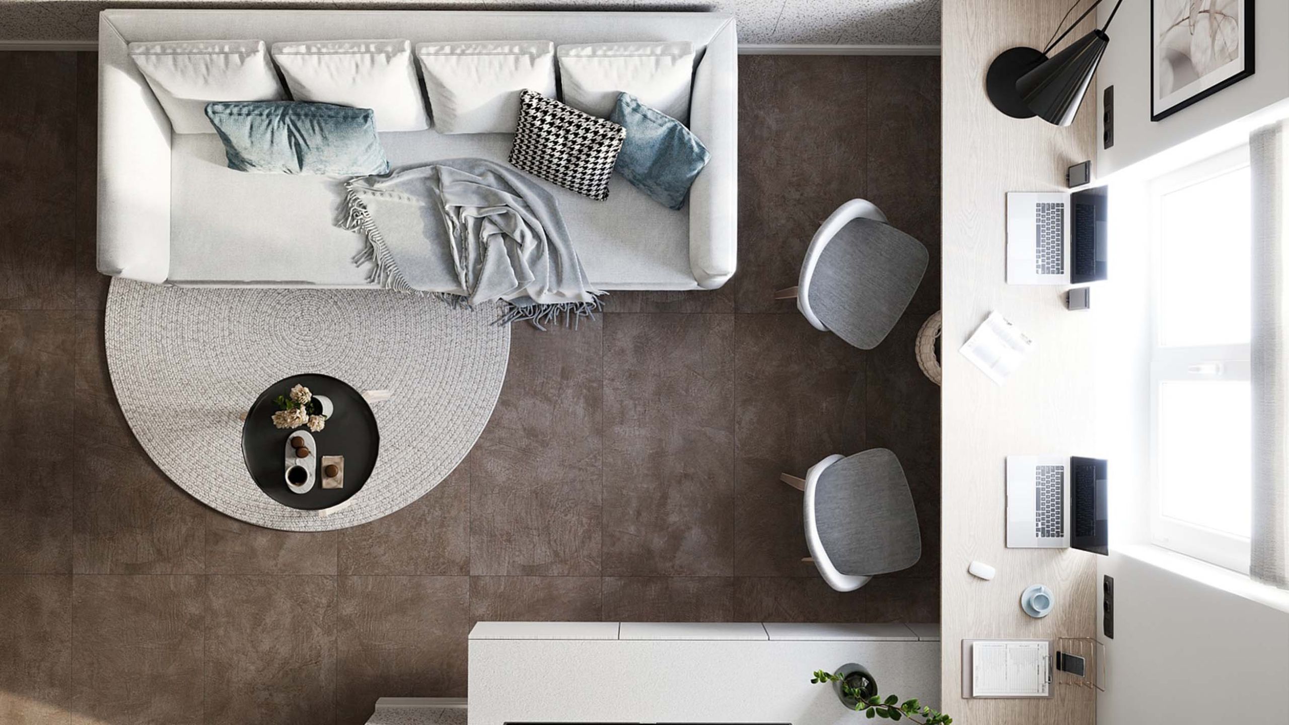 Одно из популярных направлений дизайна комнат — контемпорари. Он сочетает классический подход к цветовому оформлению с яркими акцентами на стенах. Например, электронными часами, которые одновременно показывают время разных стран мира, плазменный телевизор, вмонтированный в стену. Подчеркнуть индивидуальность интерьера поможет пол из керамогранита, повторяющий текстуру различных каменных пород от компании Estima.