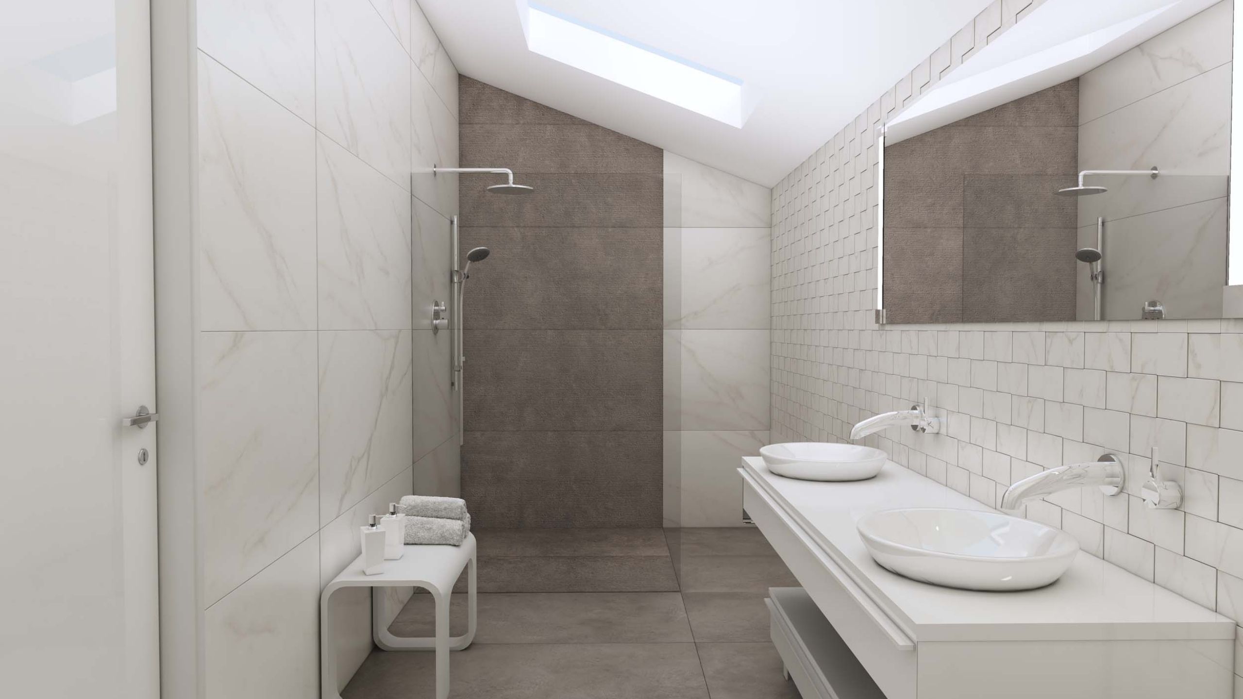 - белая плитка, мрамор или под дерево;