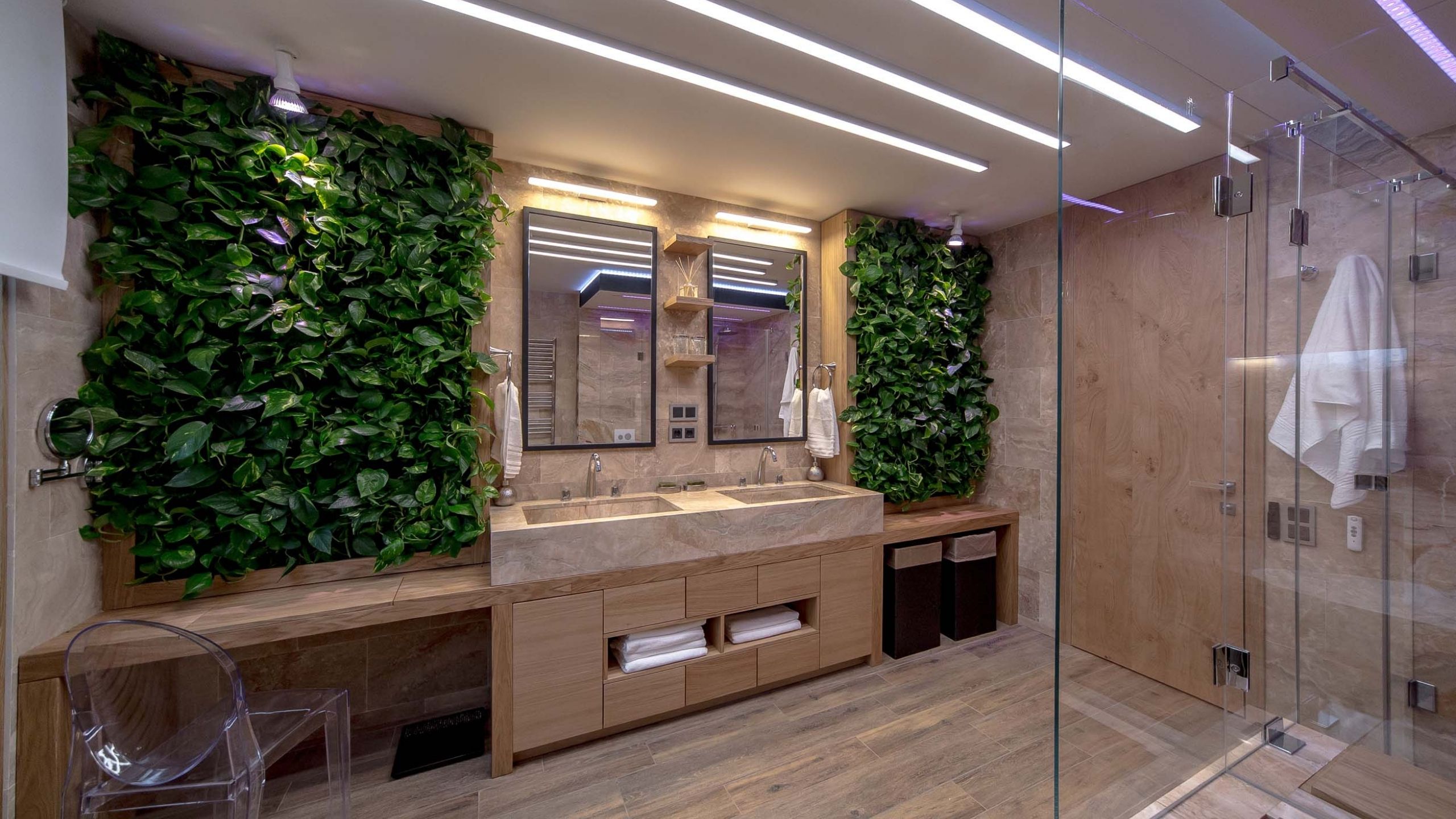 - эффектное зонирование и декорирование освещением;
