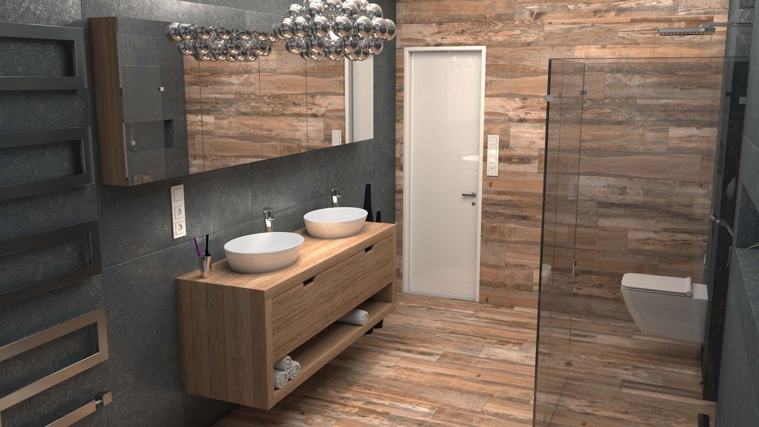- лучше подходит для просторных ванных комнат.