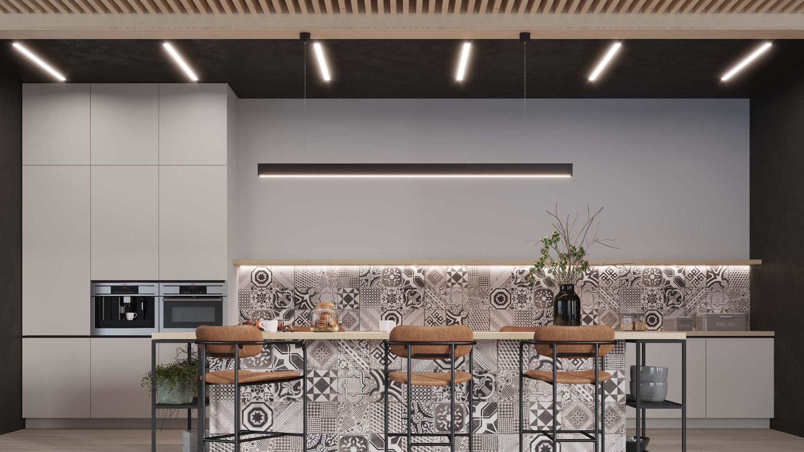 Островные зоны и барные стойки — несколько лет на пике популярности. Они хорошо смотрятся в просторных кухнях. В фешн-тенденциях стали использовать острова или полуострова для зонирования пространства. Удобство их заключается в двойном эффекте: со стороны кухни — дополнительные зоны хранения — ящички, полочки, либо встроенная техника, а с внешней стороны — бар-стойка.