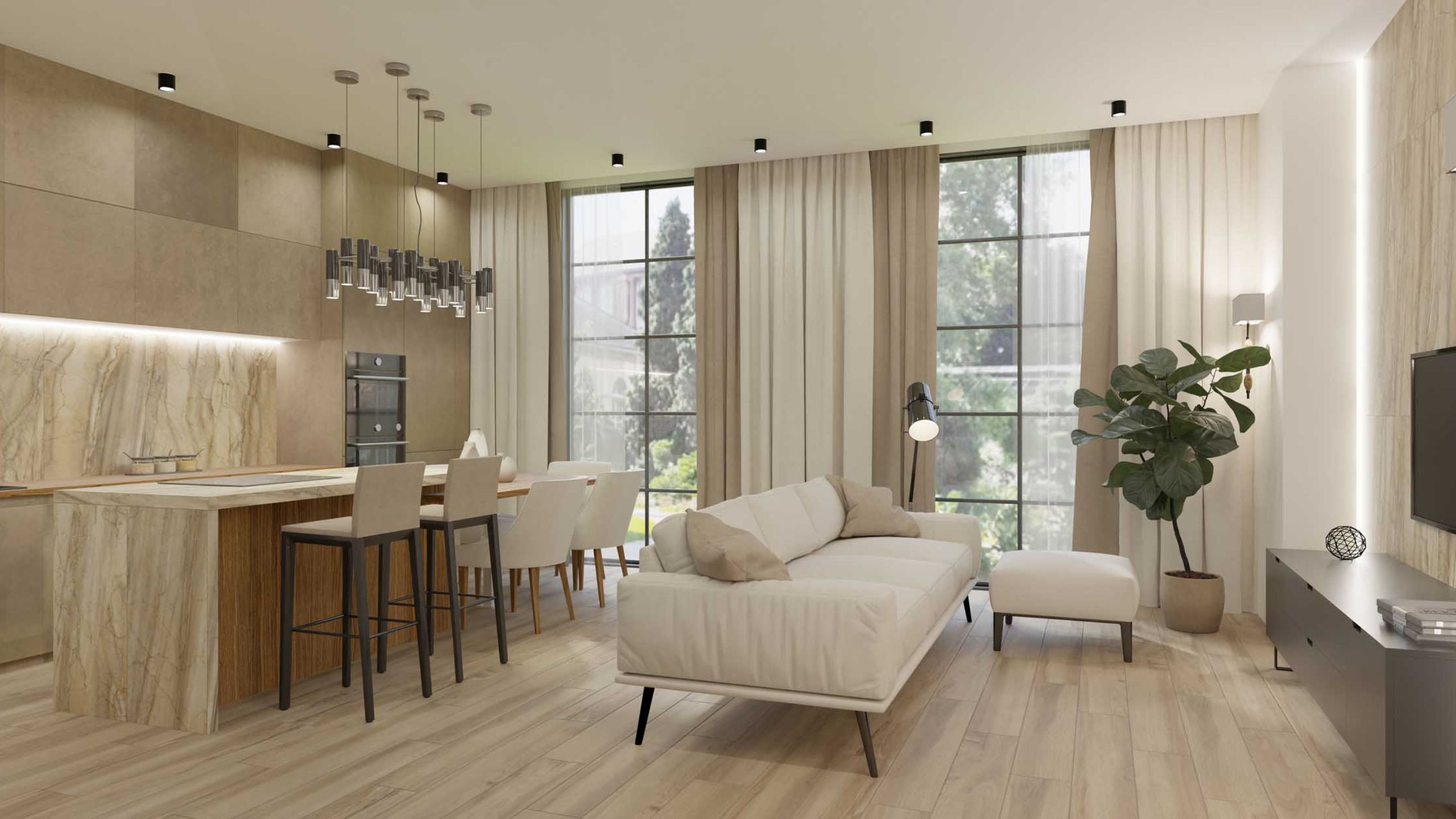 Планировка с островом и барной стойкой