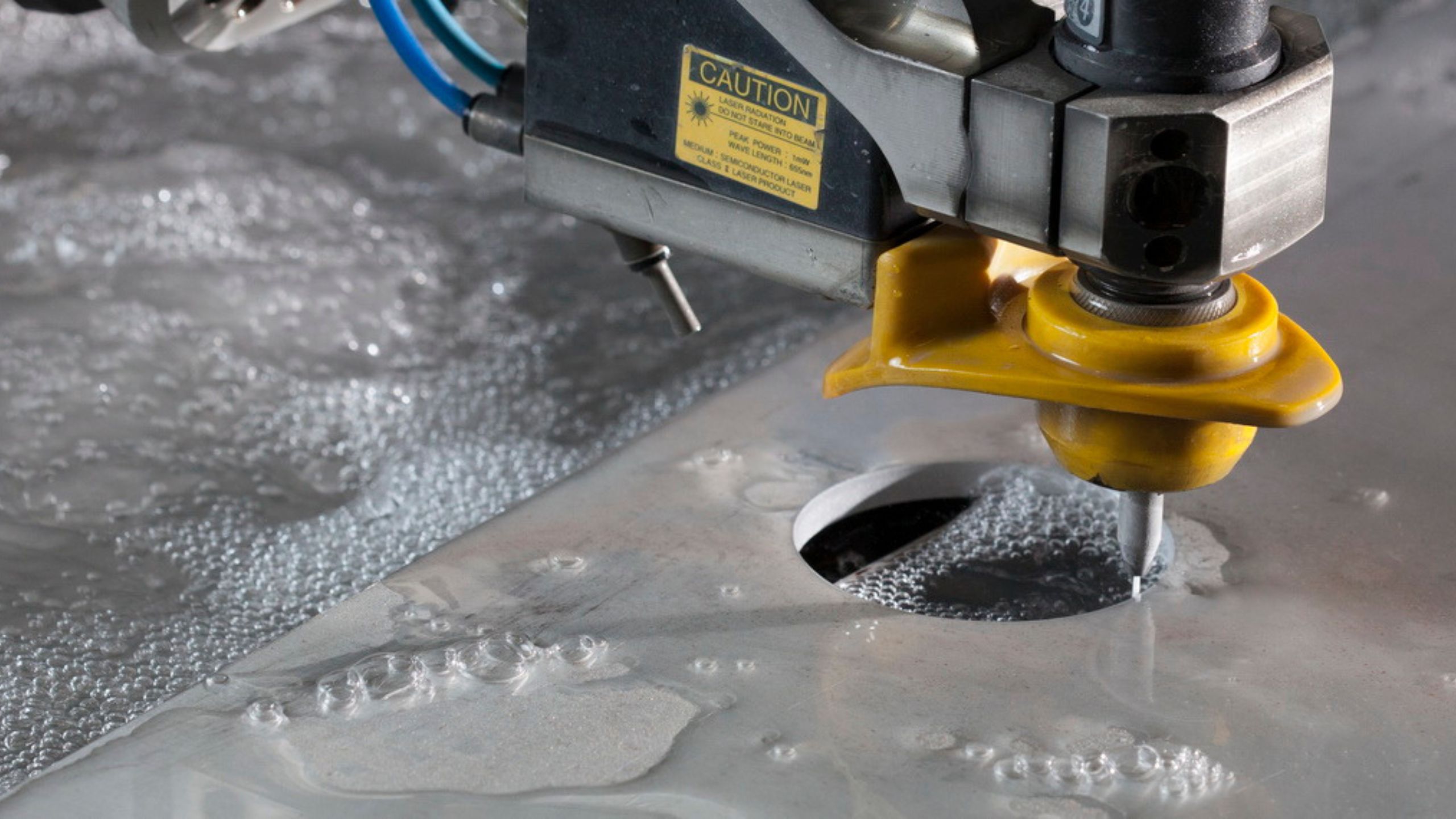 Принцип работы основан на воздействии на керамогранитное полотно смеси из воды и абразива под высоким давлением. Скорость подачи — 1 км/сек. Диаметр струи — 0,2–0,4 мм. Это позволяет осуществлять прямолинейную и фигурную резку любой сложности, вплоть до выполнения работы резчика по камню. При этом край получается идеально ровный, без сколов или трещин. Для обработки подходит керамогранит толщиной до 40 мм. Но для домашних работ такой инструмент не годится. Алгоритм работ: