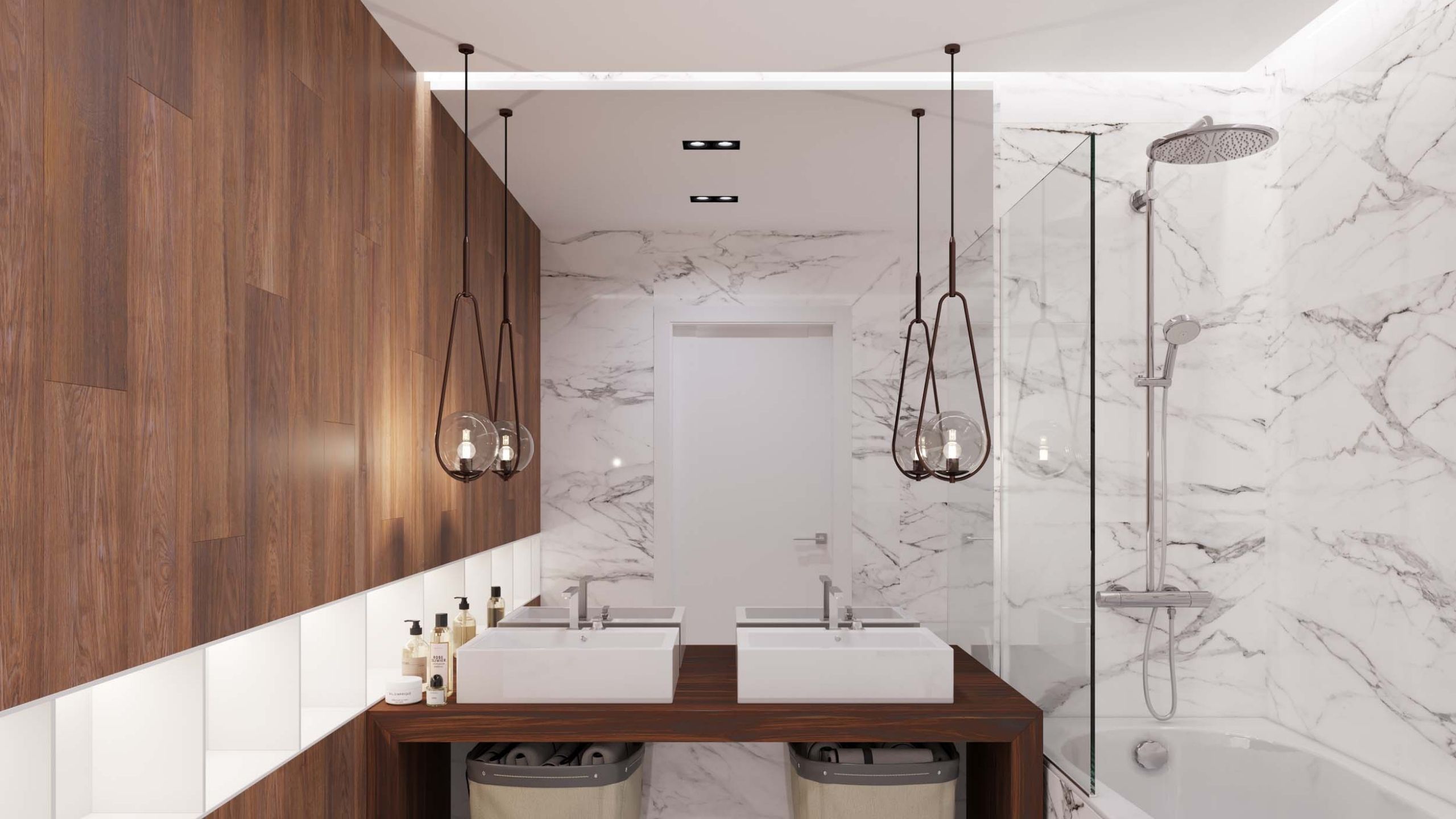 При этом можно подобрать коллекции керамогранита, которые визуально похожи на дерево, камень, мрамор, цемент. Их использовать в комнате с повышенной влажностью лучше, чем натуральные материалы. Также представлен широкий модельный ряд с дизайнерским керамогранитом, который может создать неповторимый образ ванной комнаты и добавить изюминку в оформление.