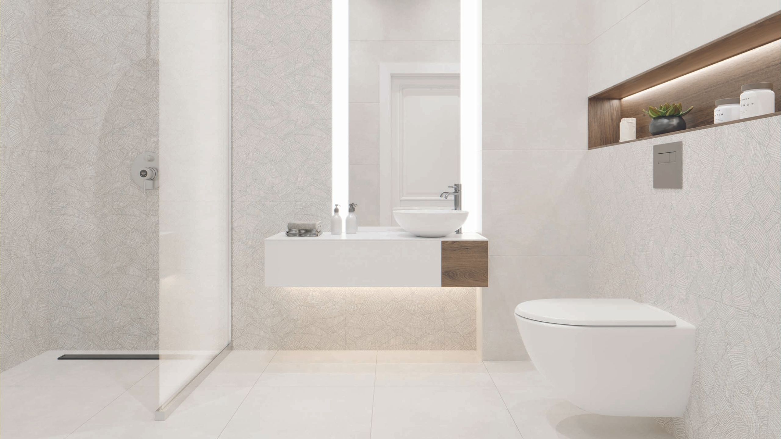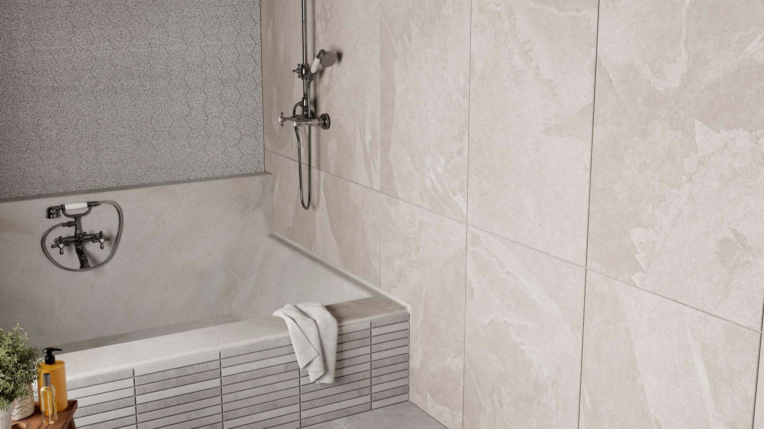 - Лаппатированный — сочетает глянцевые и матовые поверхности, поэтому может применяться для стен ванной и оформления пола. Стоит рассмотреть коллекцию Vsison.