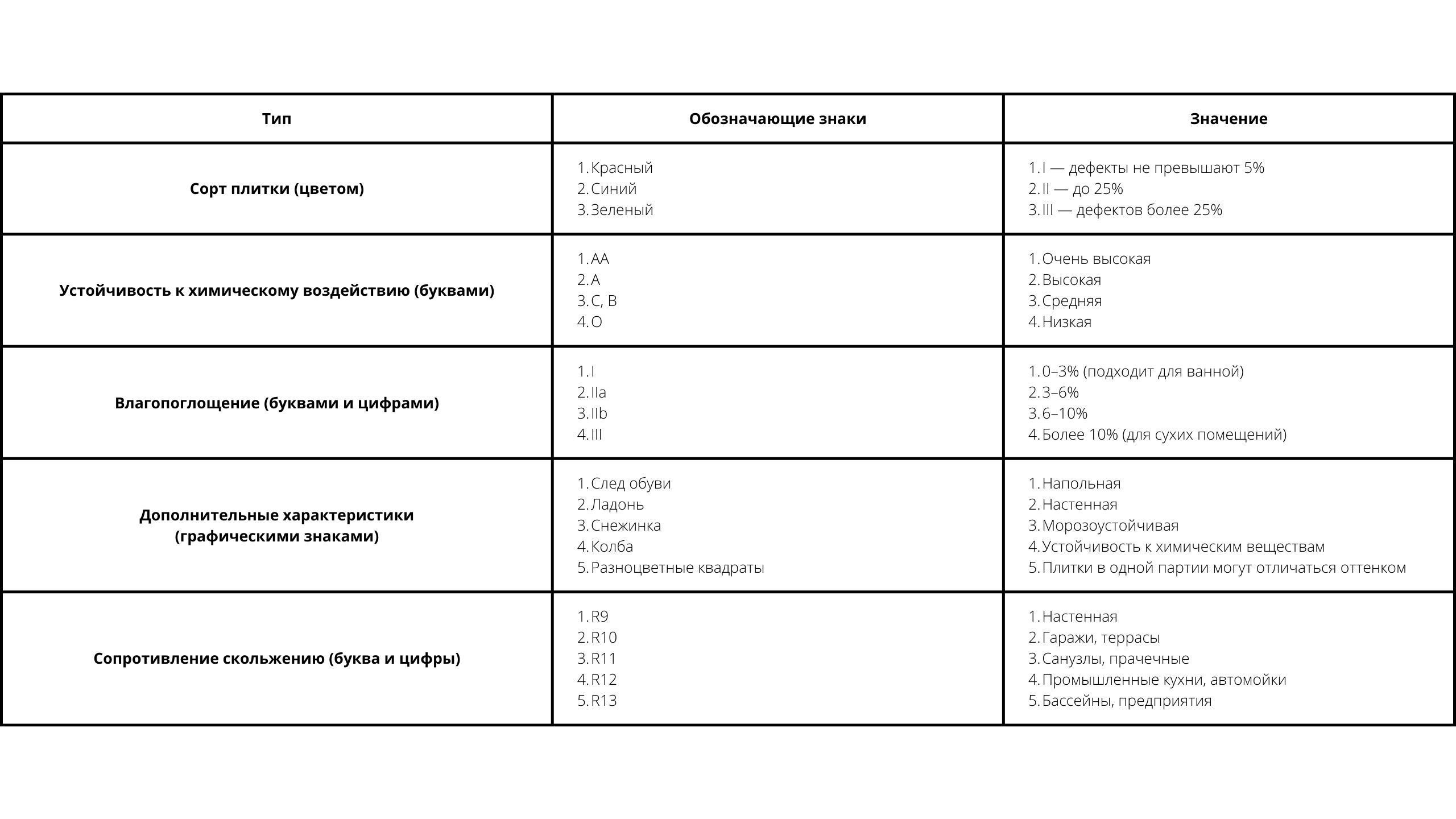 Производитель указывает все данные о продукции на упаковке. Расшифровка маркирующих знаков поможет сделать правильный выбор плитки.