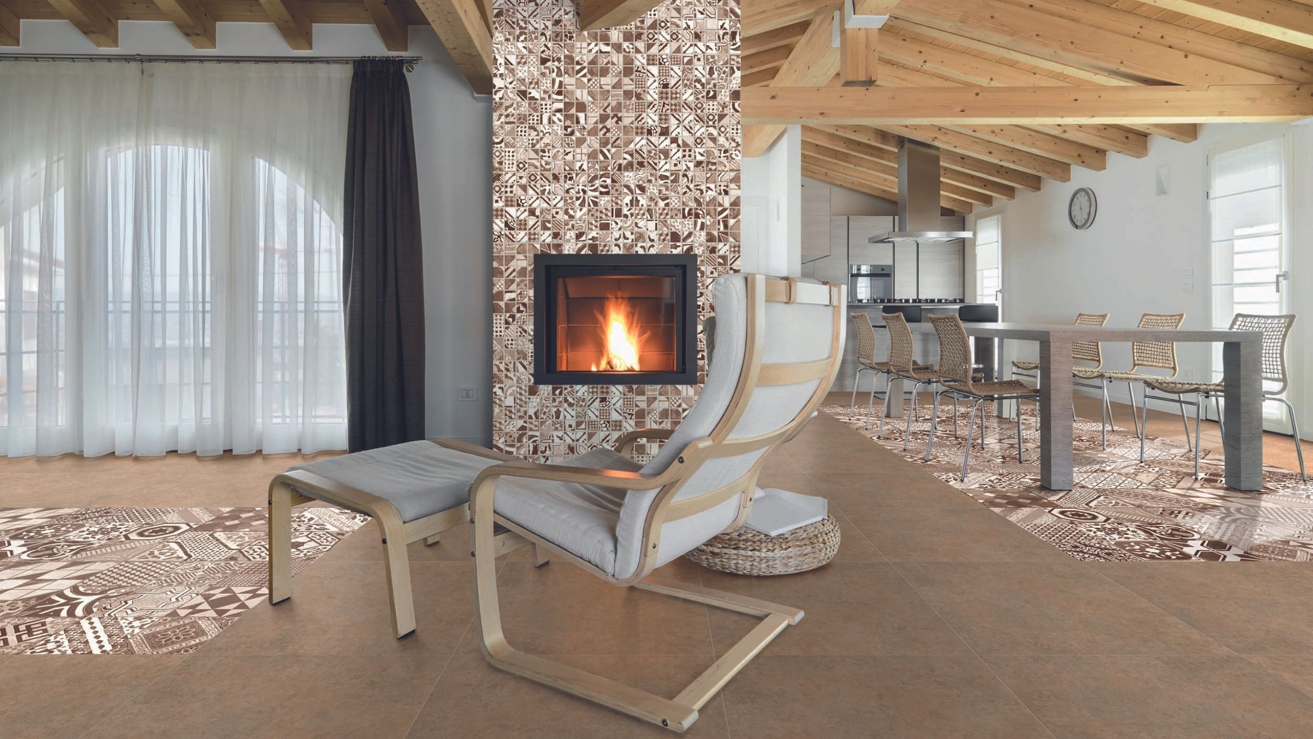 Главный критерий при выборе материала для облицовки помещений, где установлены камины и печи, — огнеупорность. То есть устойчивость к воздействию открытого огня и высоким температурам, хорошая теплопроводность, чтобы тепло равномерно распределялось по всему периметру комнаты. А также невосприимчивость к температурным перепадам. Керамогранитный облицовочный материал идеально подходит под все критерии, с его помощью можно создавать уникальные образы, которые будут соответствовать дизайну помещения.