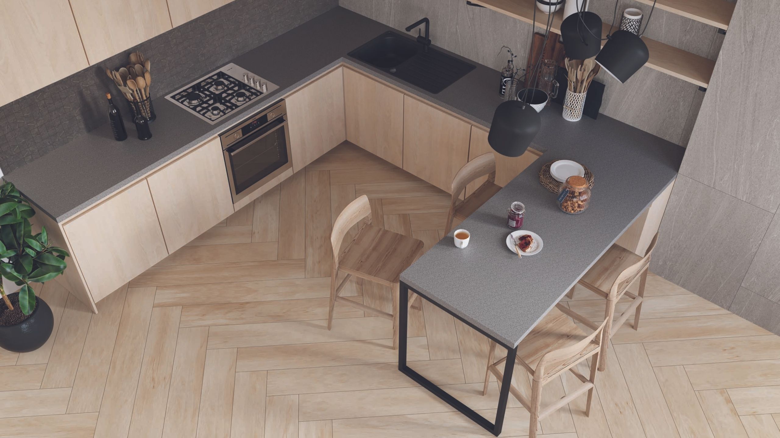 Зрительно такую отделку сложно отличить от ламината или паркетной доски. В ней сочетается красота, визуальное тепло и уют натуральной древесины с прочностью и неприхотливостью керамогранита. Такой материал — хорошая альтернатива натуральному дереву. Его можно использовать для обустройства кухни, ванной комнаты, коридора, гостиной, спальни, а также офисов и коммерческих помещений.