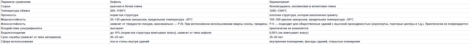 Подробное сравнение сферы использования этих двух облицовочных материалов можно посмотреть в таблице.