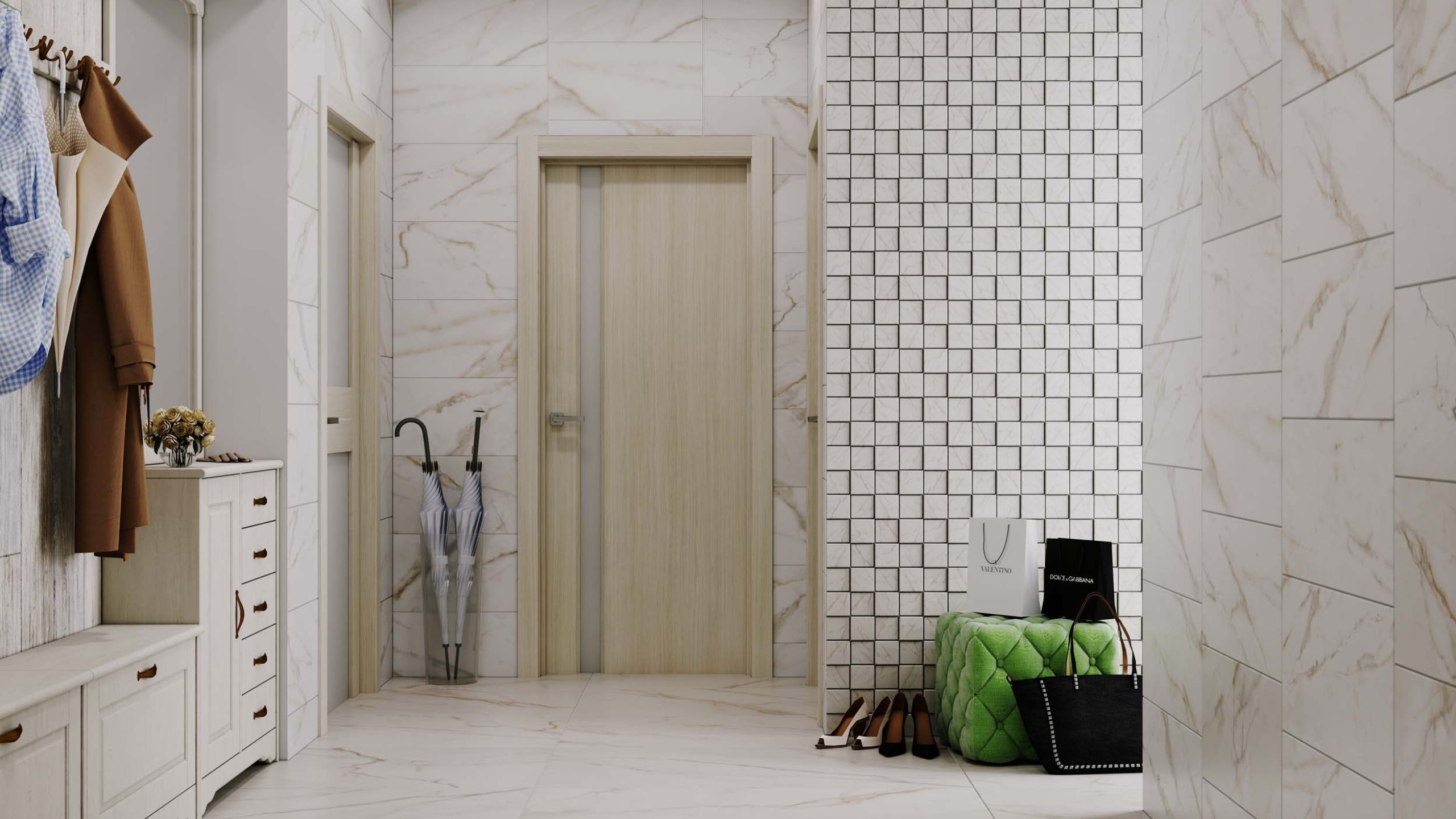 - В прихожей постоянно скапливается грязь, песок и пыль. Они царапают поверхность пола, поэтому стоит отказаться от выраженной структуры.