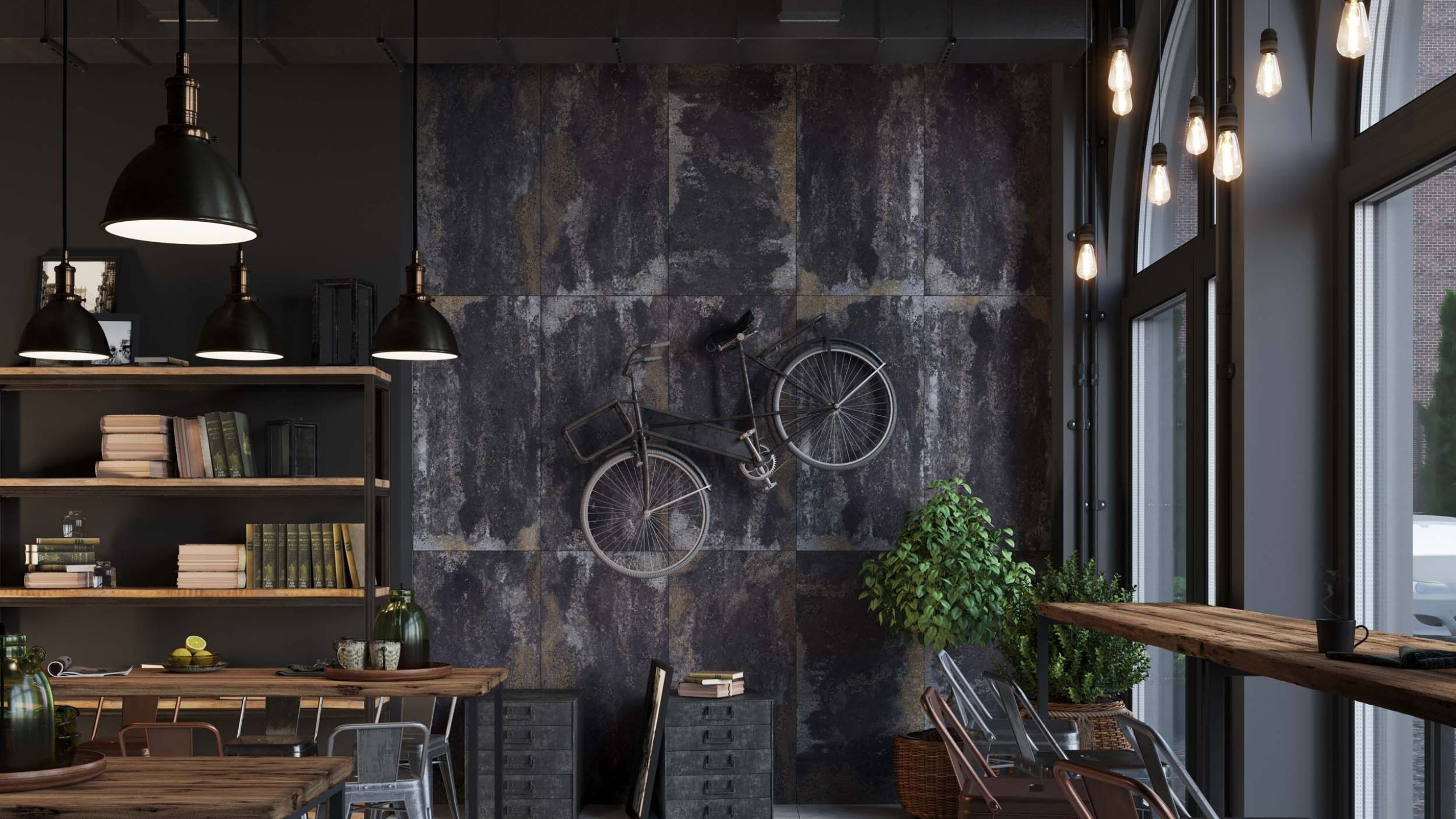 Вы можете выбрать керамогранит Iron, который выглядит как стальные листы. Он смотрится брутально и минималистично.