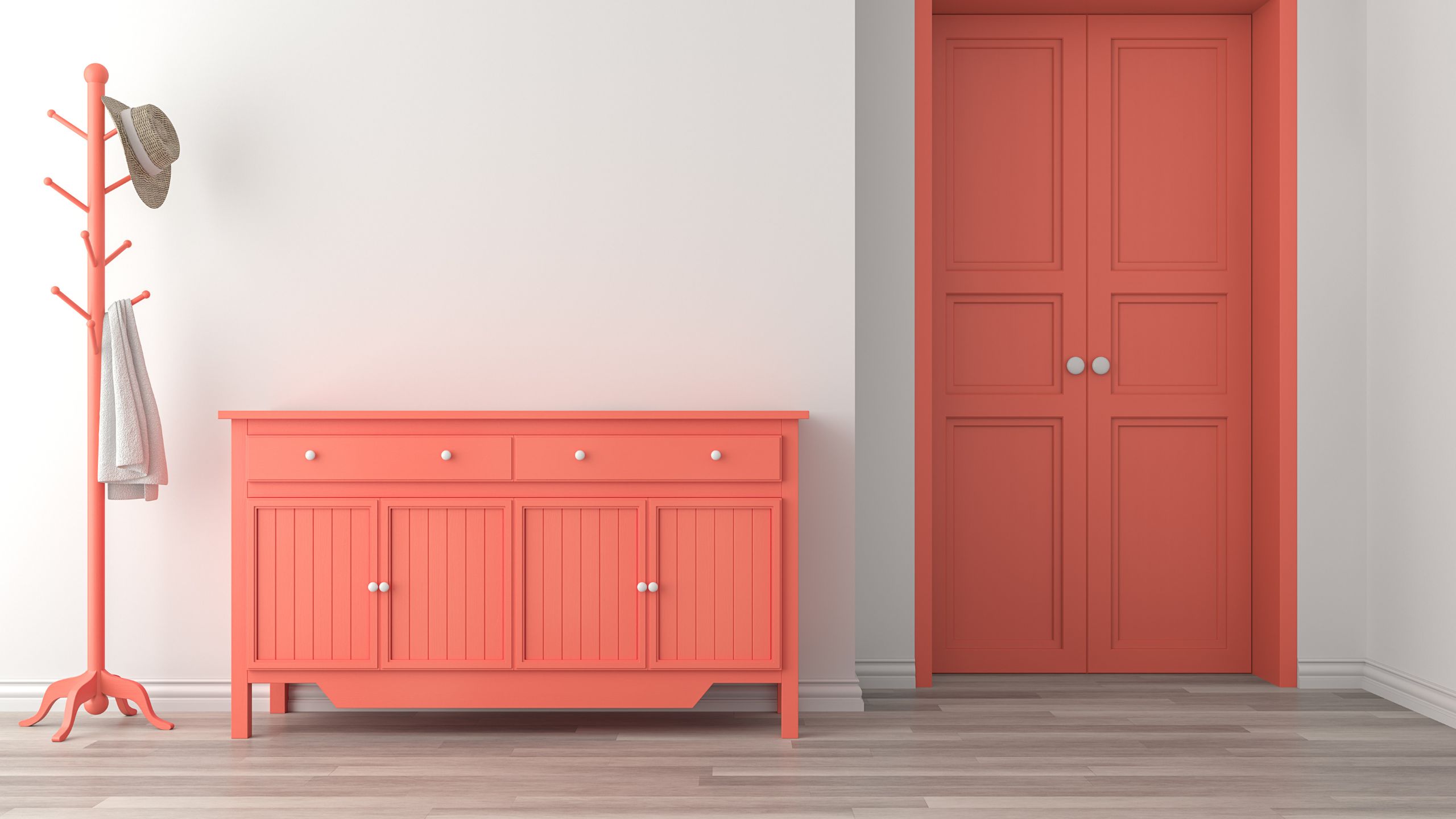 Коралловый цвет в разных комнатах