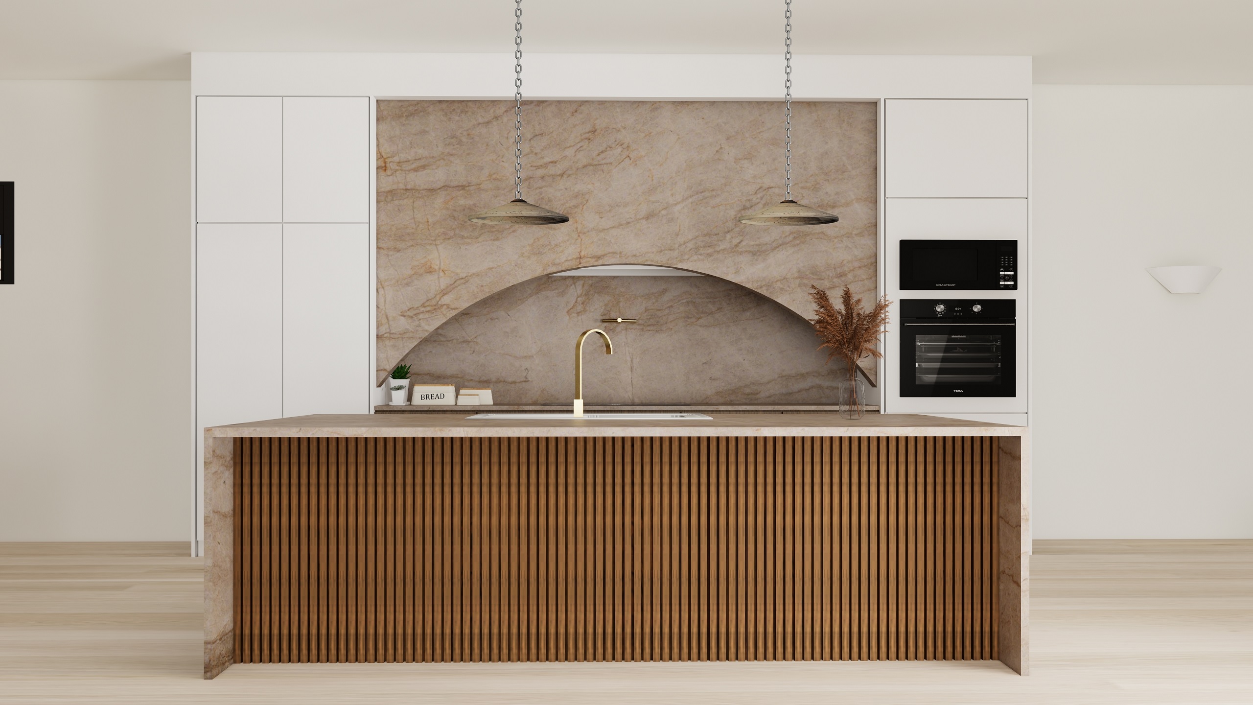 В дизайне кухни важна целостность: линии шкафов продолжаются в отделке стен, цвета перекликаются, текстуры не конфликтуют. Не используется резкий контраст — все выстроено в мягком и плавном ритме.