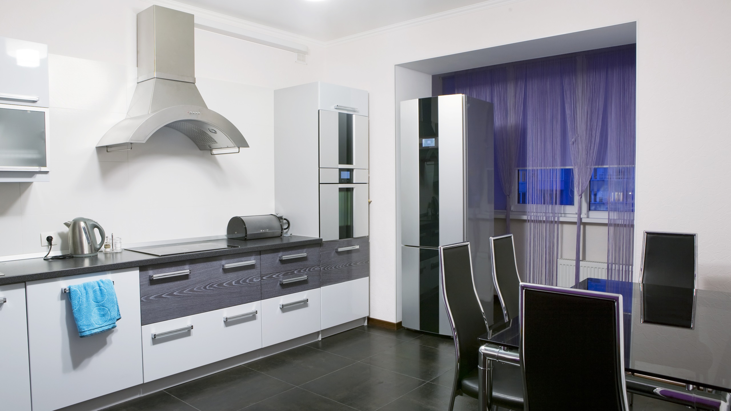 Для небольших помещений хай-тек станет спасением: мебель настолько функциональна, что вместит все приборы, не «съест» много пространства.