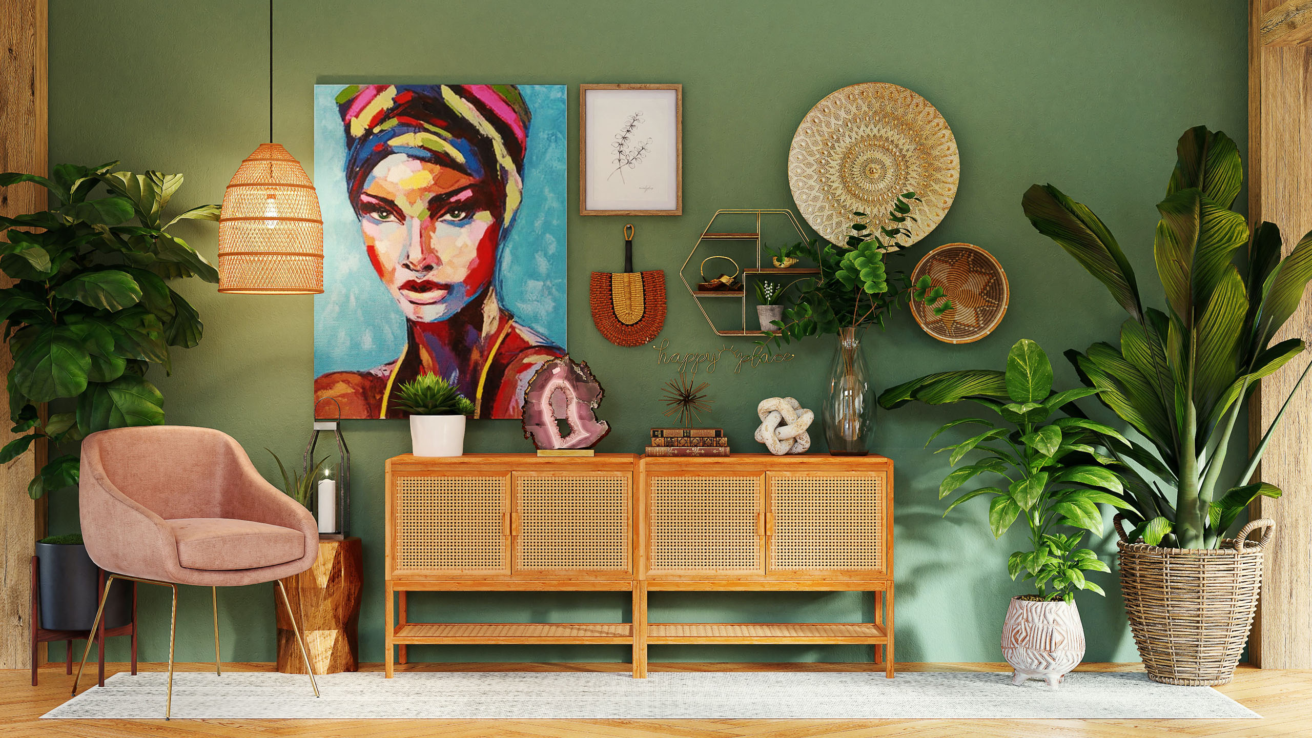 Лайфхак: вместо традиционных аксессуаров, лучше использовать крупные экзотические растения: бамбуковую пальму, бостонский папоротник, фикус Бенджамина, инжир или мирт. Такой биофильный дизайн – один из макро-трендов последних лет.