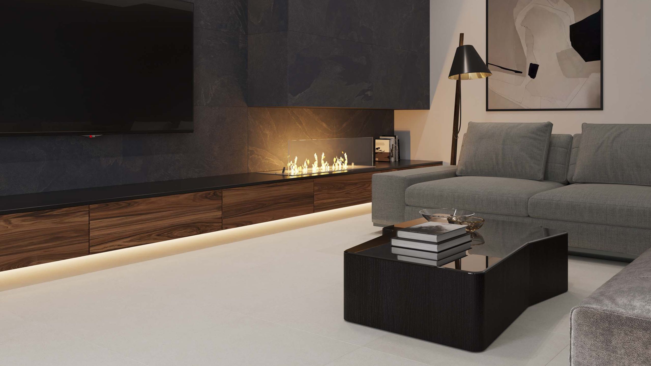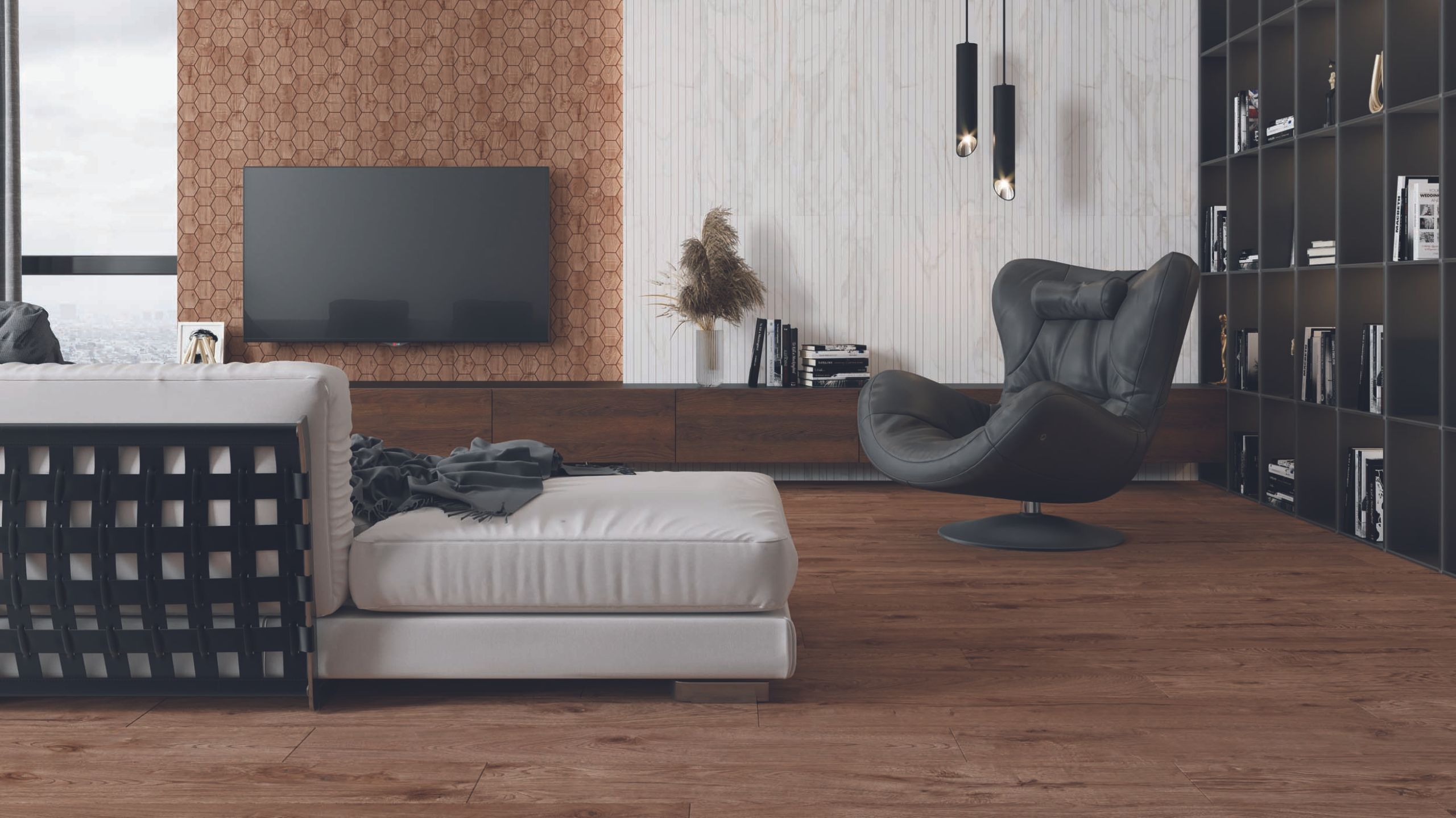 - износоустойчивость — способность выдержать нагрузки и истирания — в такой гостиной спокойно можно устраивать вечеринки и не бояться, что на плитке образуются вмятины и потертости;