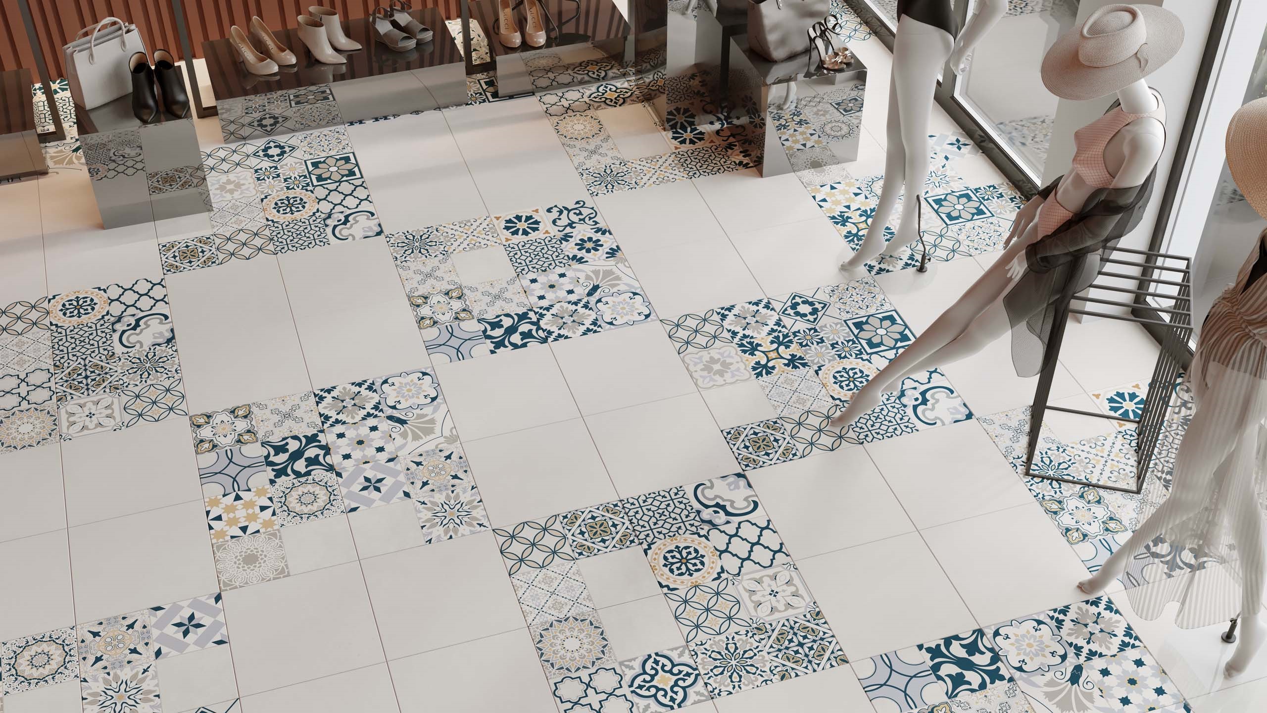 В ней гармонично соединяются разнообразные паттерны, португальские и турецкие мотивы, создавая 13 непохожих рисунков. Вы сможете комбинировать плиты по собственному желанию, изобретая абсолютно уникальный, индивидуальный дизайн.
