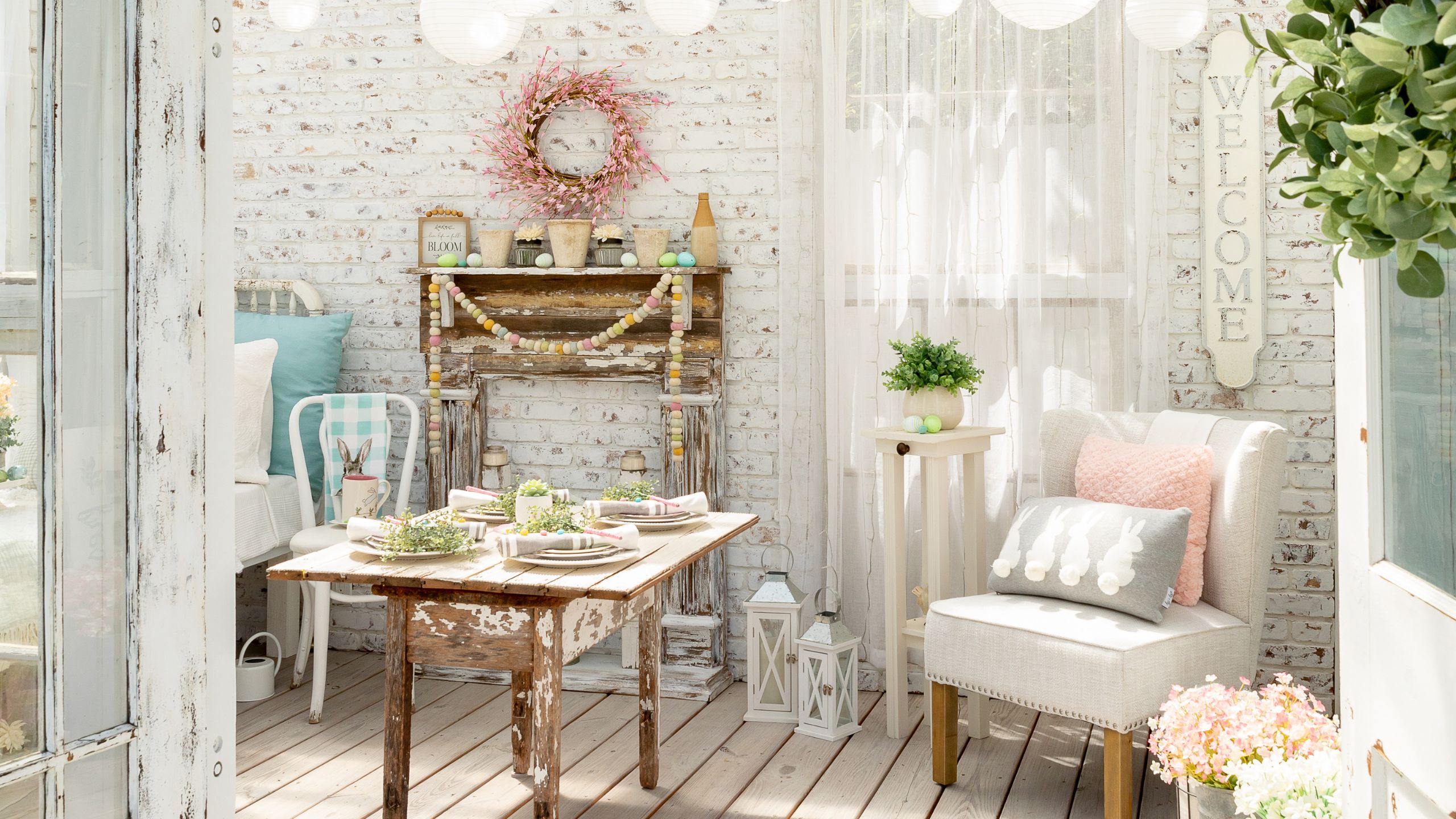 Текстиль, мебель и декор подбирают в целом. Черты стиля шебби-шик, как правило, есть в каждом элементе.