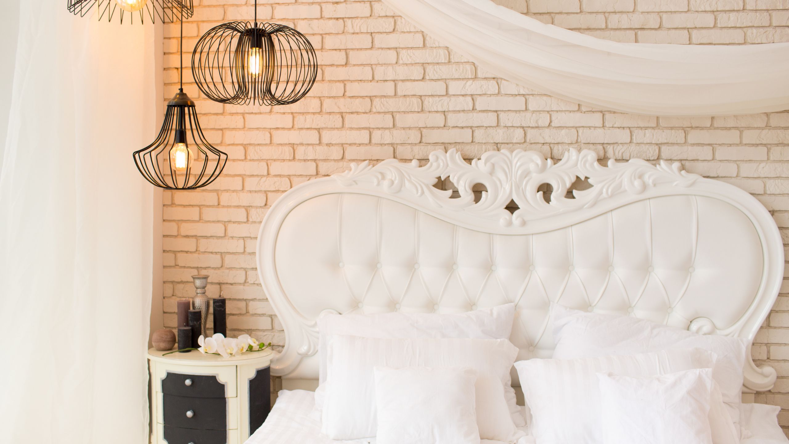 Многие поклонники стиля размещают над кроватью балдахин. С помощью него и десятка подушек получается скрыть «современность» кровати.