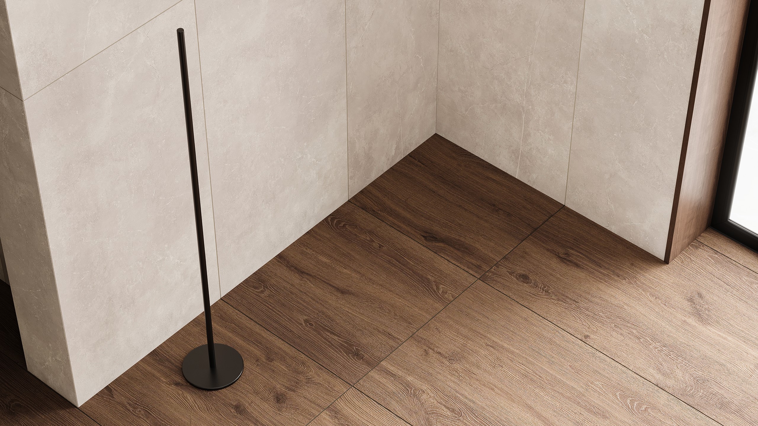 Для ванной идеально подходят крупноформатные решения. Их уникальные текстуры и премиальное качество создают эффект дорогого, гармоничного покрытия, а минимальные швы делают пол практичным и безопасным для влажной среды.