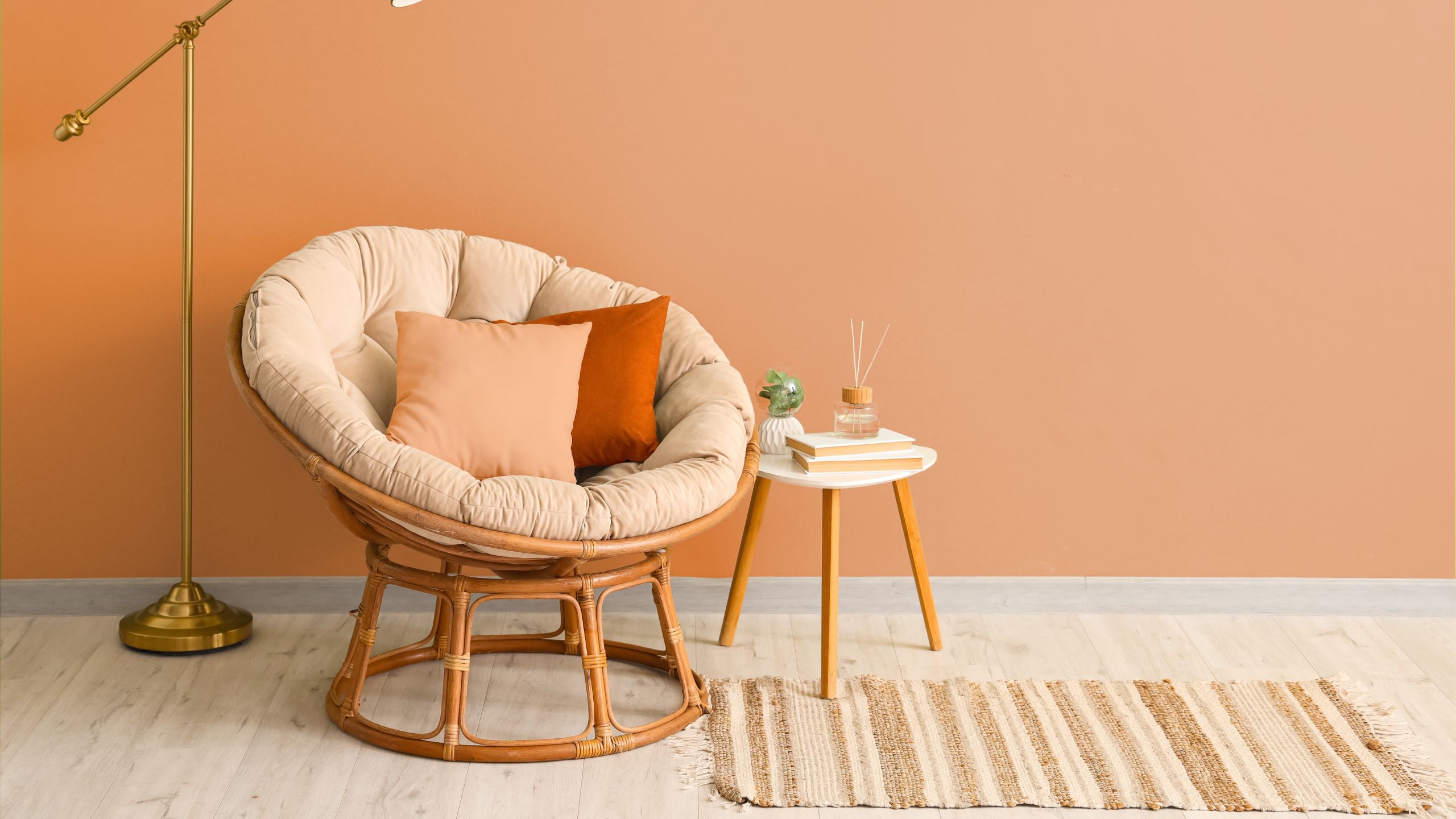 Если покрасить все стены в комнате в оттенок персика, пространство может потерять глубину и выглядеть излишне монотонным. Вместо этого лучше выделить одну акцентную стену. Также можно ограничиться покраской угла или ниши.