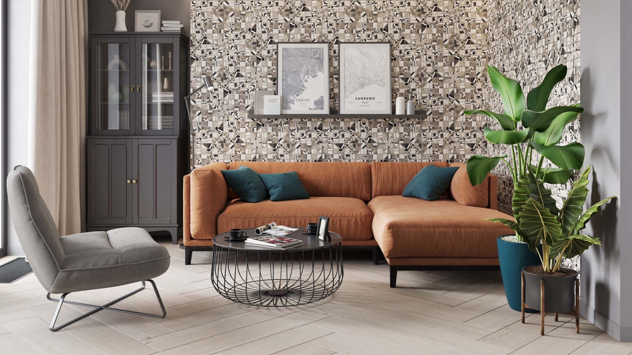 Дерево вместе с декоративной плиткой добавят уюта помещению. Облицовочный материал в стиле patchwork — основа, которую подбирают заранее, а ламинат, деревянный пол лишь будет фоном.