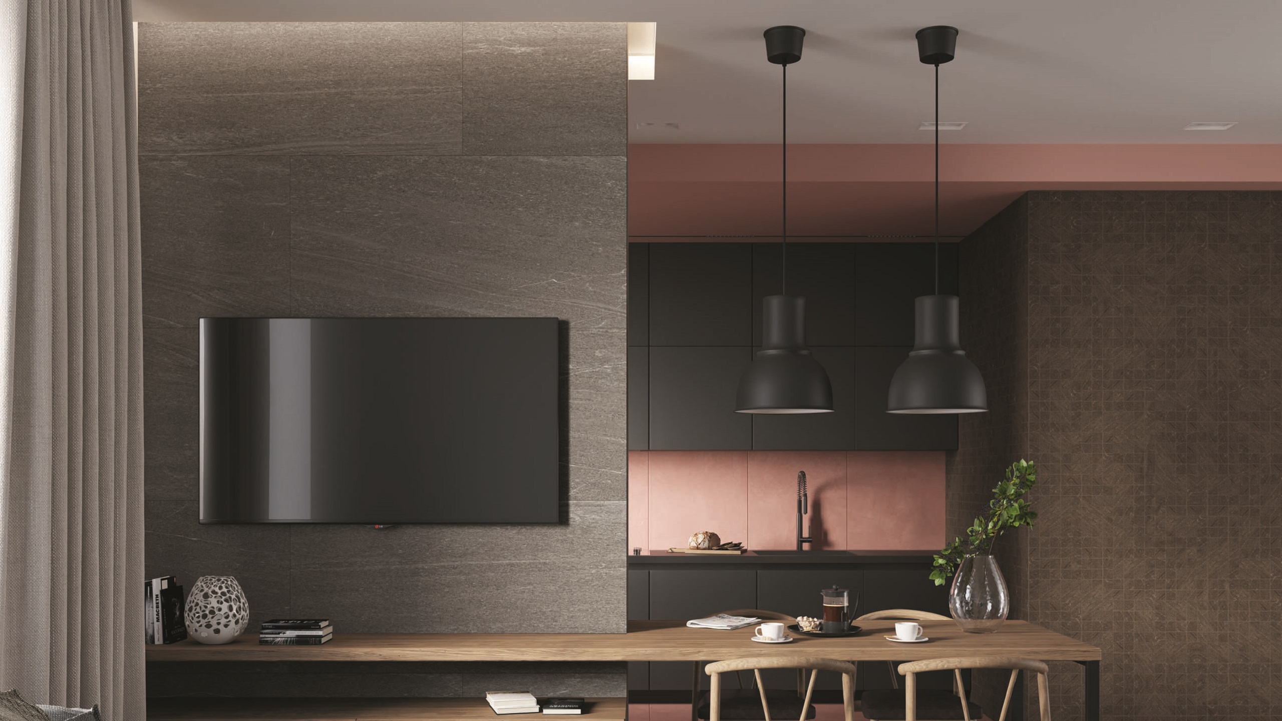 Широкоформатная. Минимальная длина — 120 см. Такой вариант подходит для отделки просторных помещений в стиле лофт, например, с помощью коллекции Magmas.