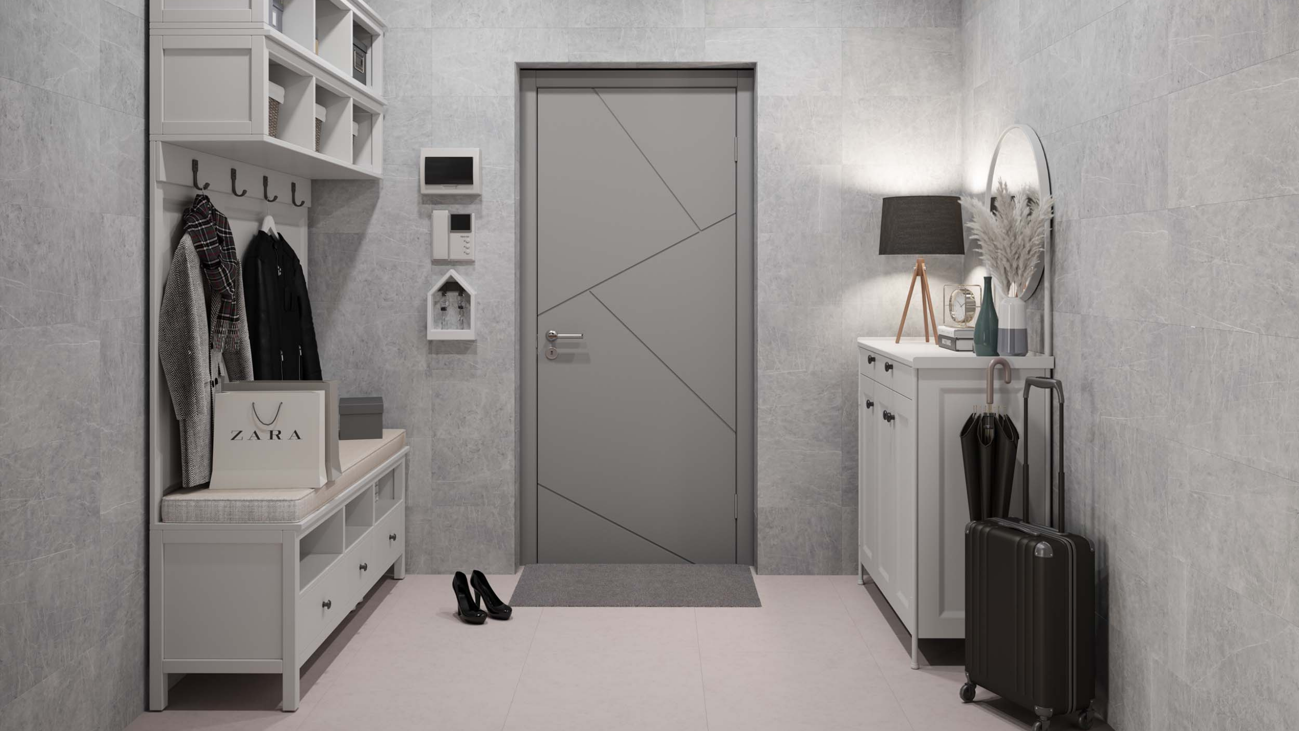 Сочетайте холодный мрамор с тактильными материалами. Например, с полированным керамогранитом под дерево или цемент. Так вы добьетесь более уютной атмосферы в помещении. Керамический гранит, имитирующий мрамор красиво смотрится в современных интерьерах, в стилях лофт, сканди и неоклассика.