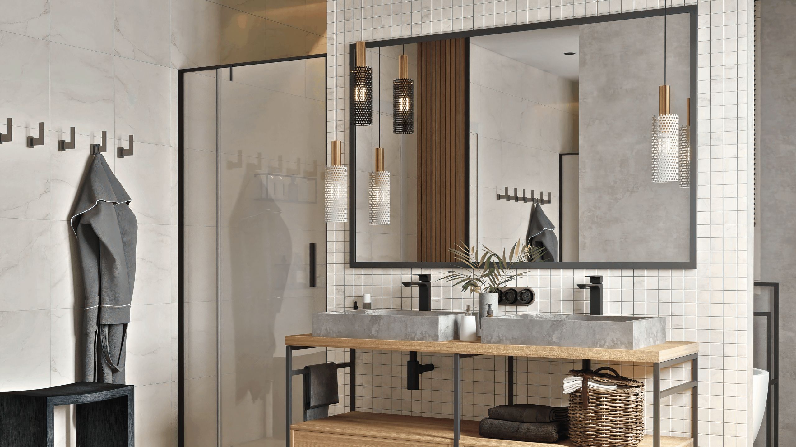 Также приветствуется различный хендмейд-декор. Его количество зависит от дизайнерской концепции и размера площади. Чем меньше помещение, тем больше нужно экономить пространство. Декоративные составляющие должны дополнить интерьер, а не перегрузить его. Больше внимания нужно уделять отделочным материалам. Керамогранит — беспроигрышный выбор — практично, красиво, долговечно. В компании Estima можно выбрать из более 50 коллекций: Terra, Classic Wood, Artwood и других.