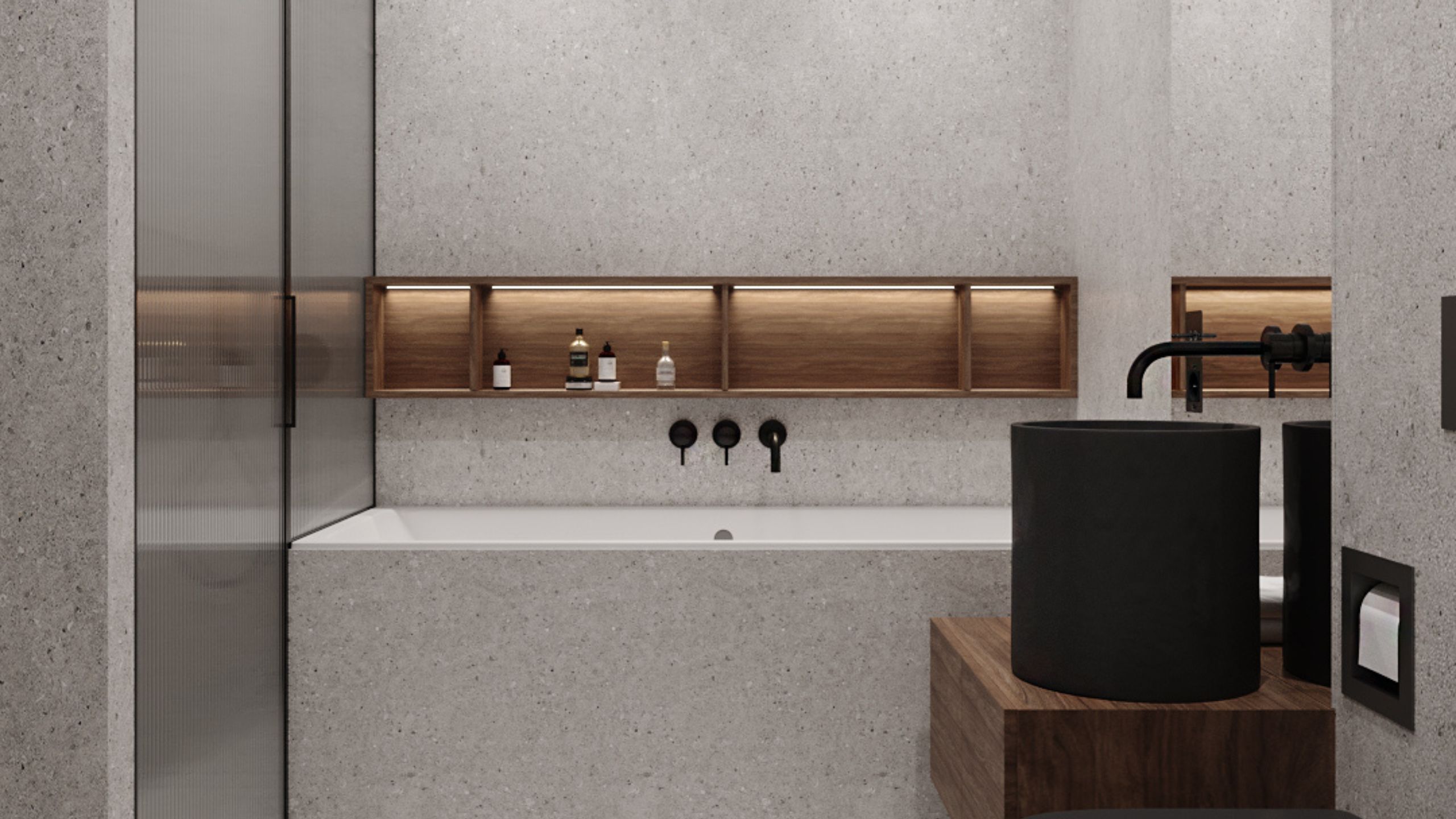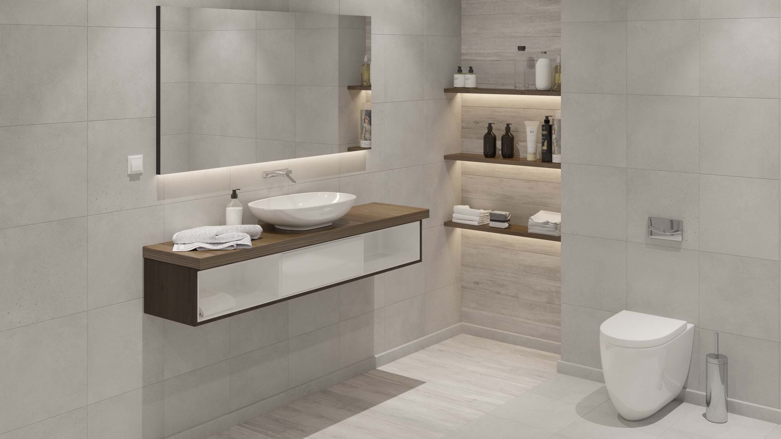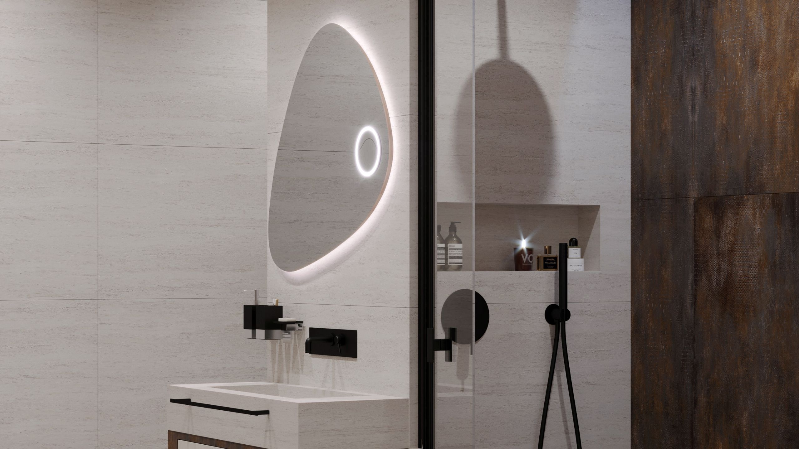 Освещение и декор ванной в стиле хай технолоджи