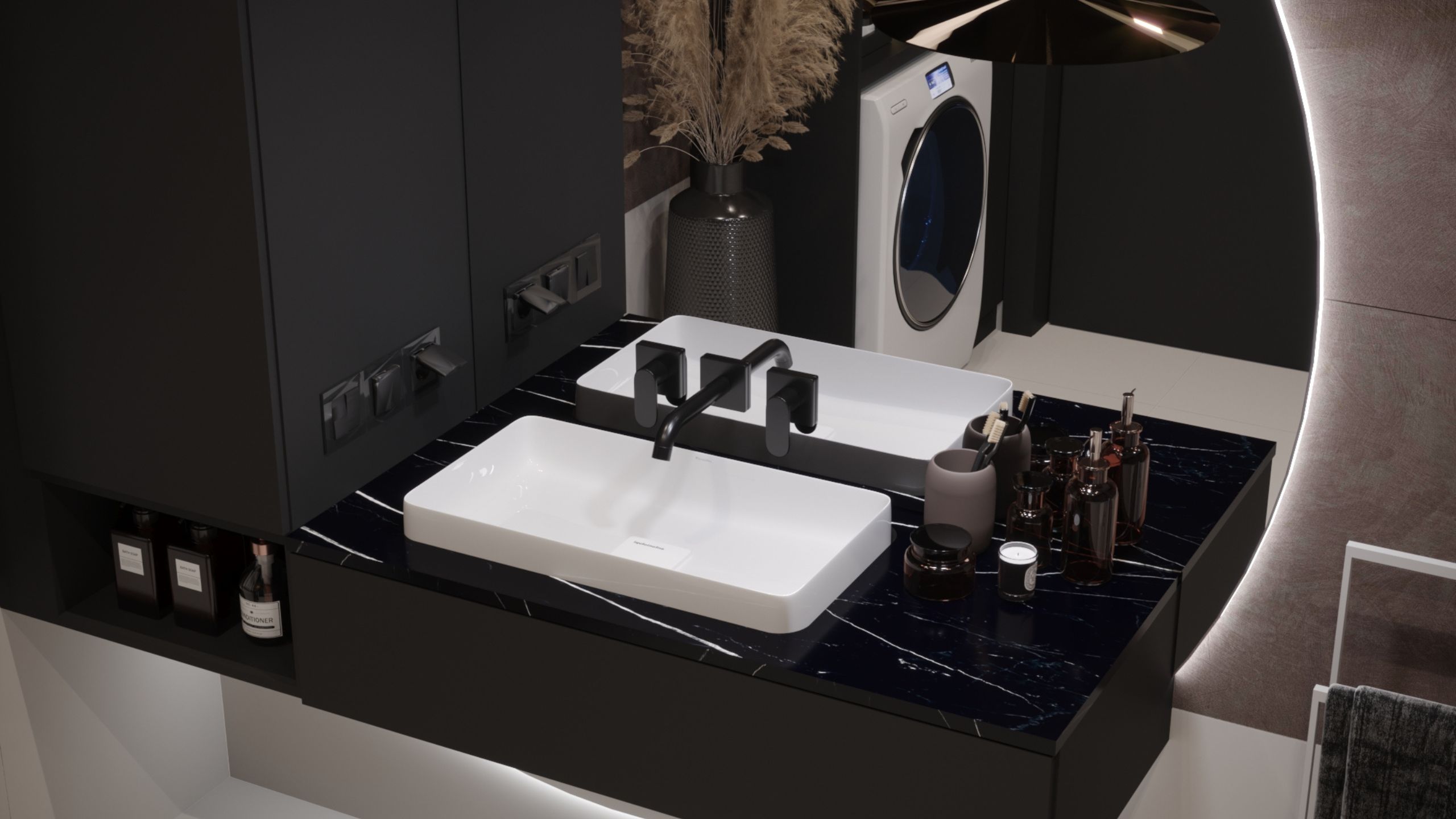 - сантехника темного цвета;