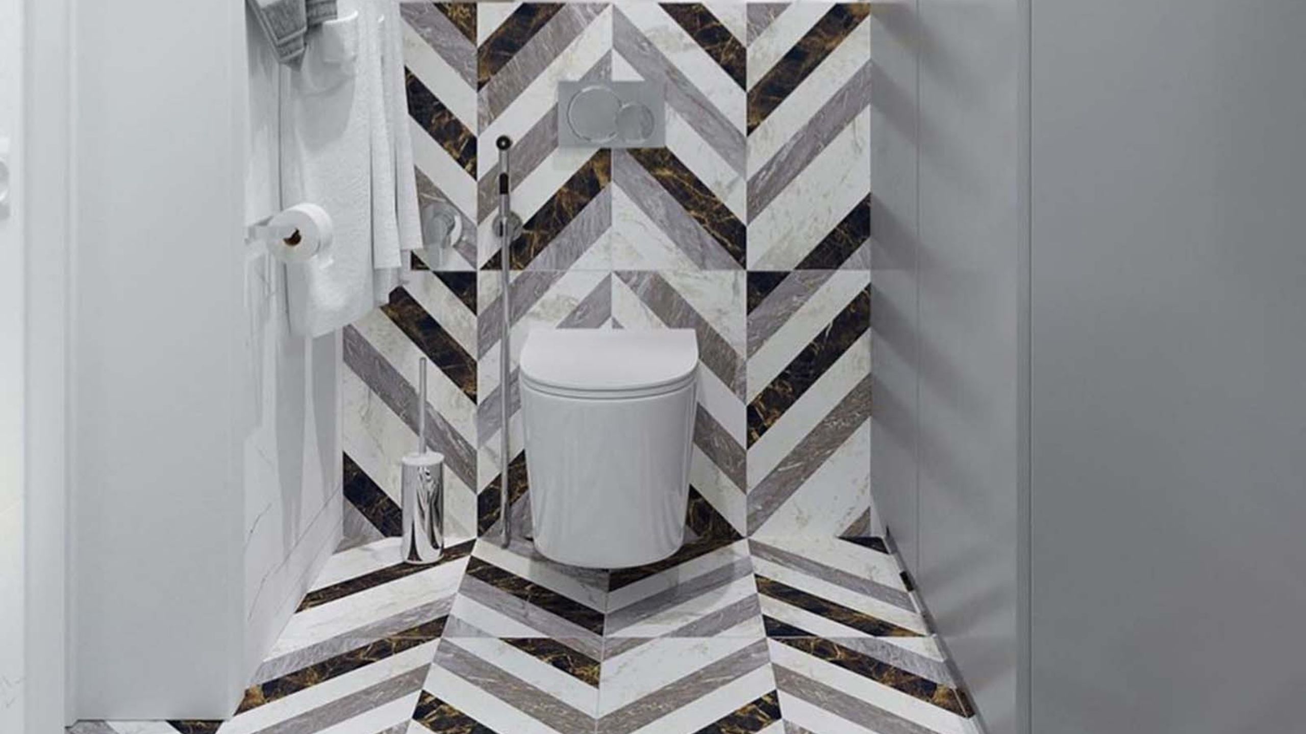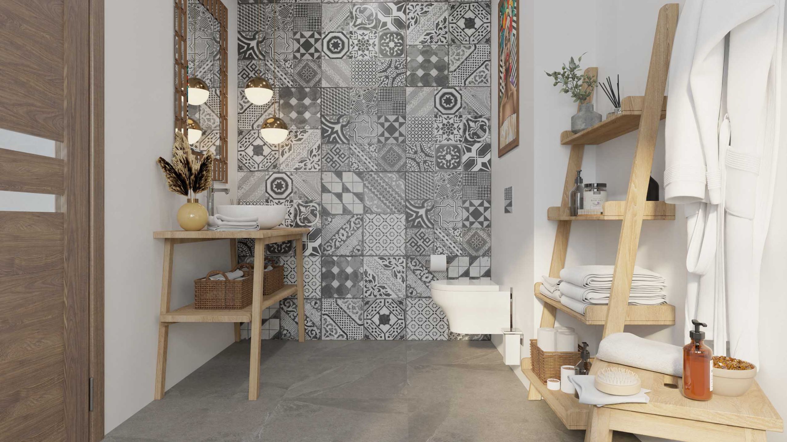 Ахроматические расцветки плитки пэчворк в интерьере ванной