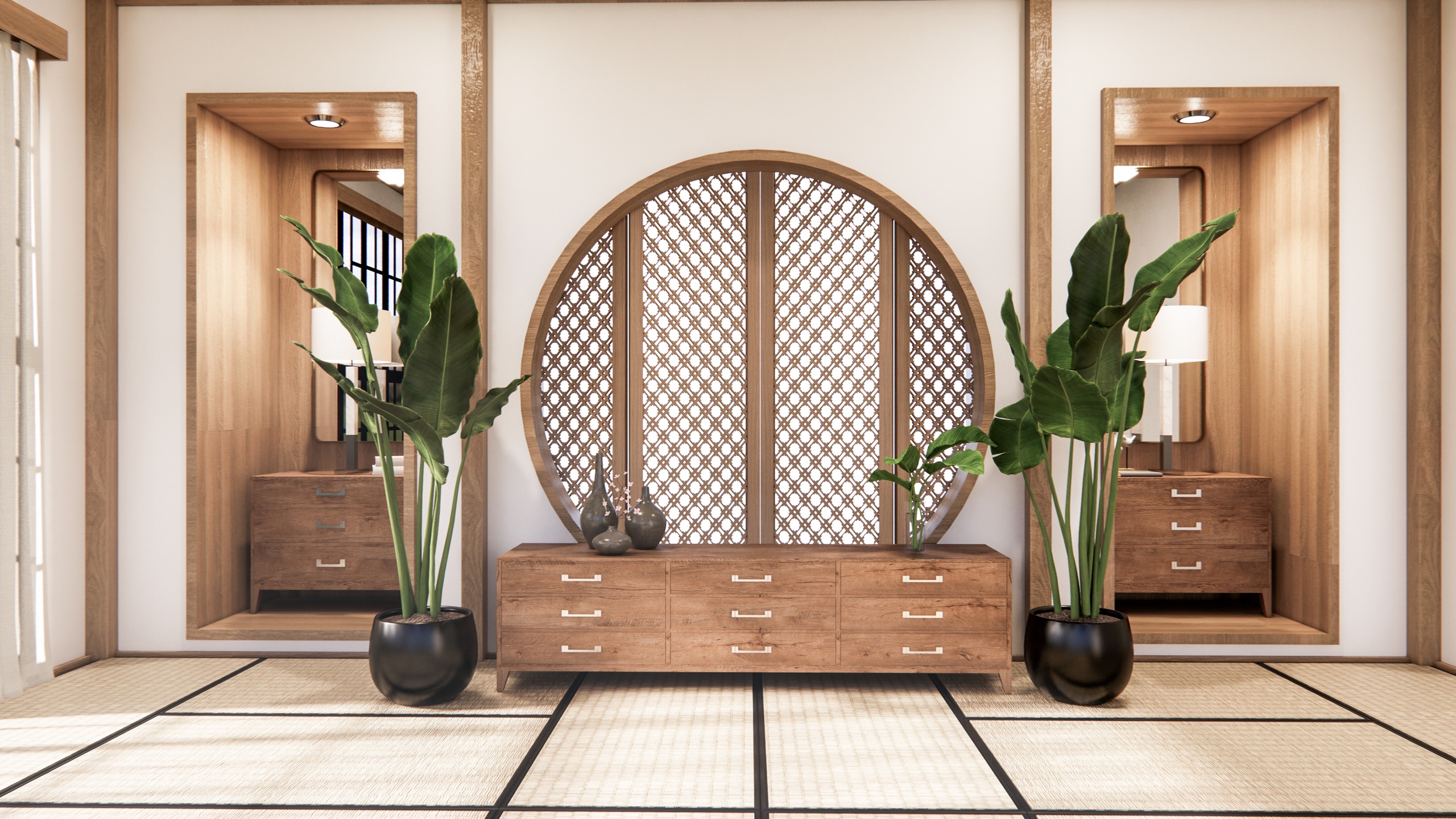 Японскому стилю присущи минимализм, функциональность, связь с природой. В интерьерах много свободного пространства, естественного света. Преобладают светлые природные оттенки, натуральные фактуры дерева и камня.