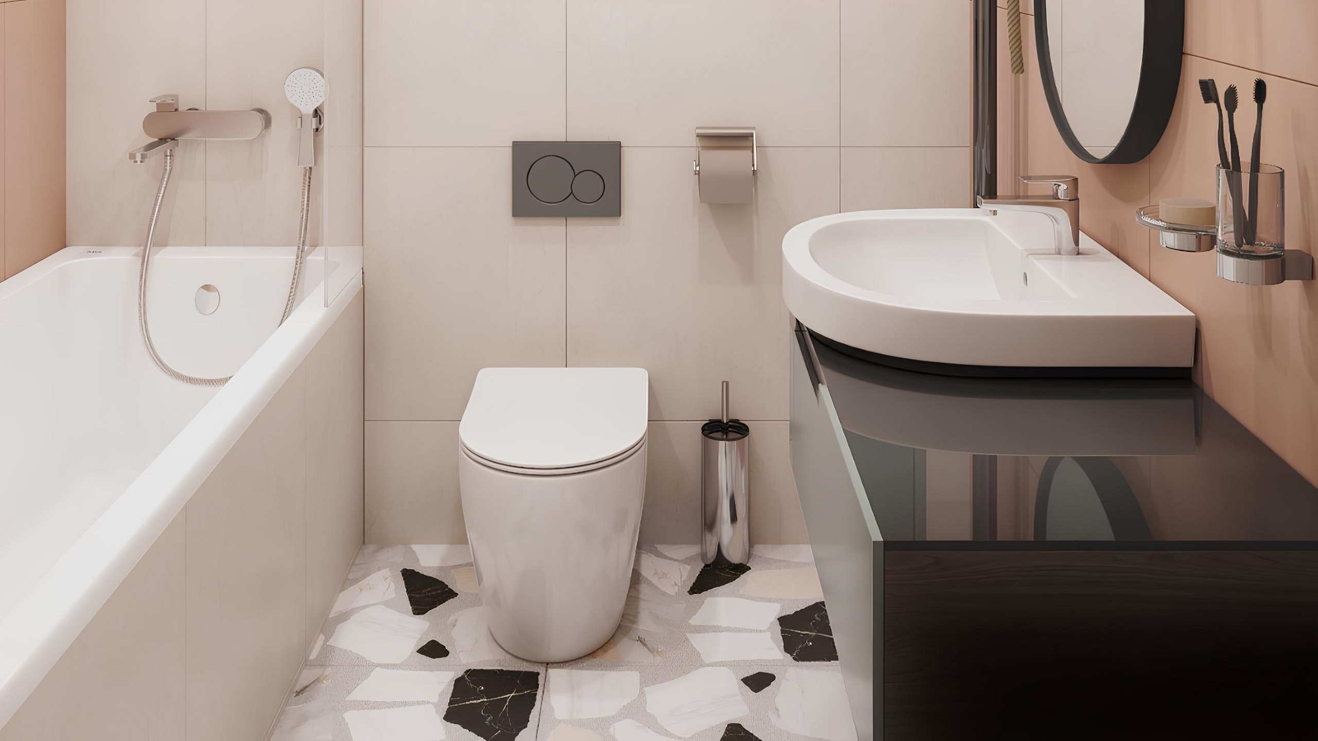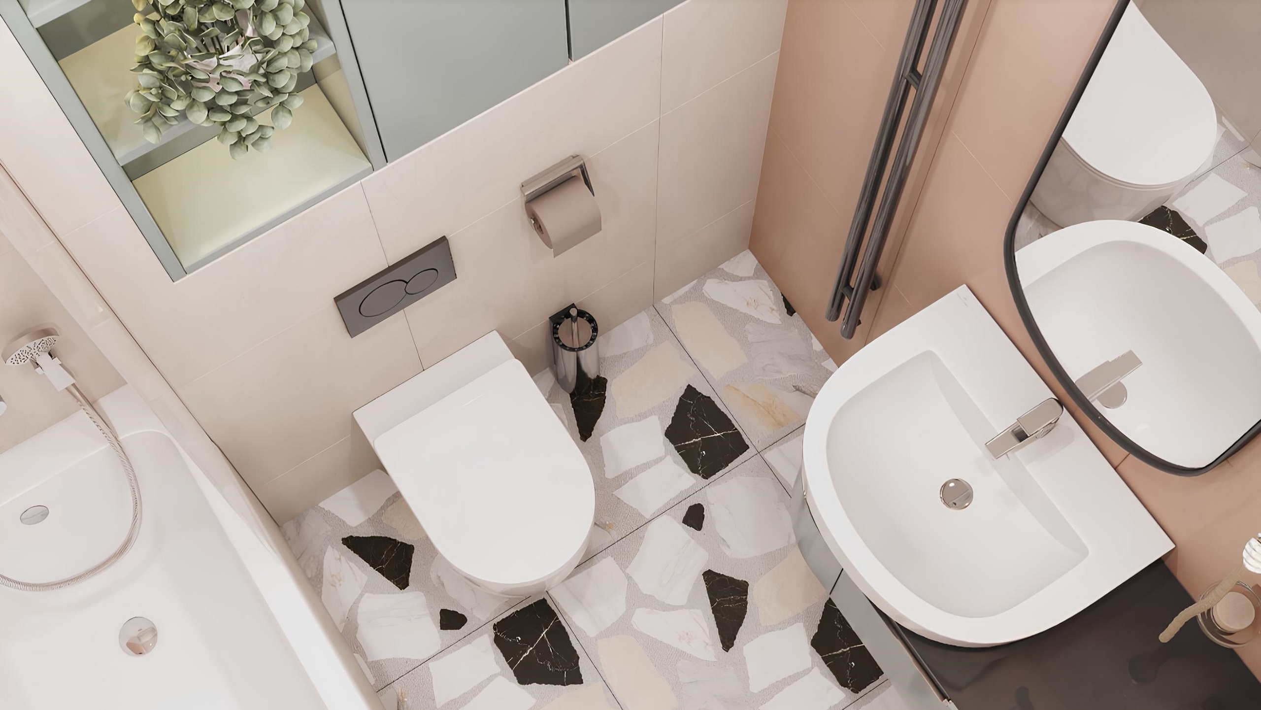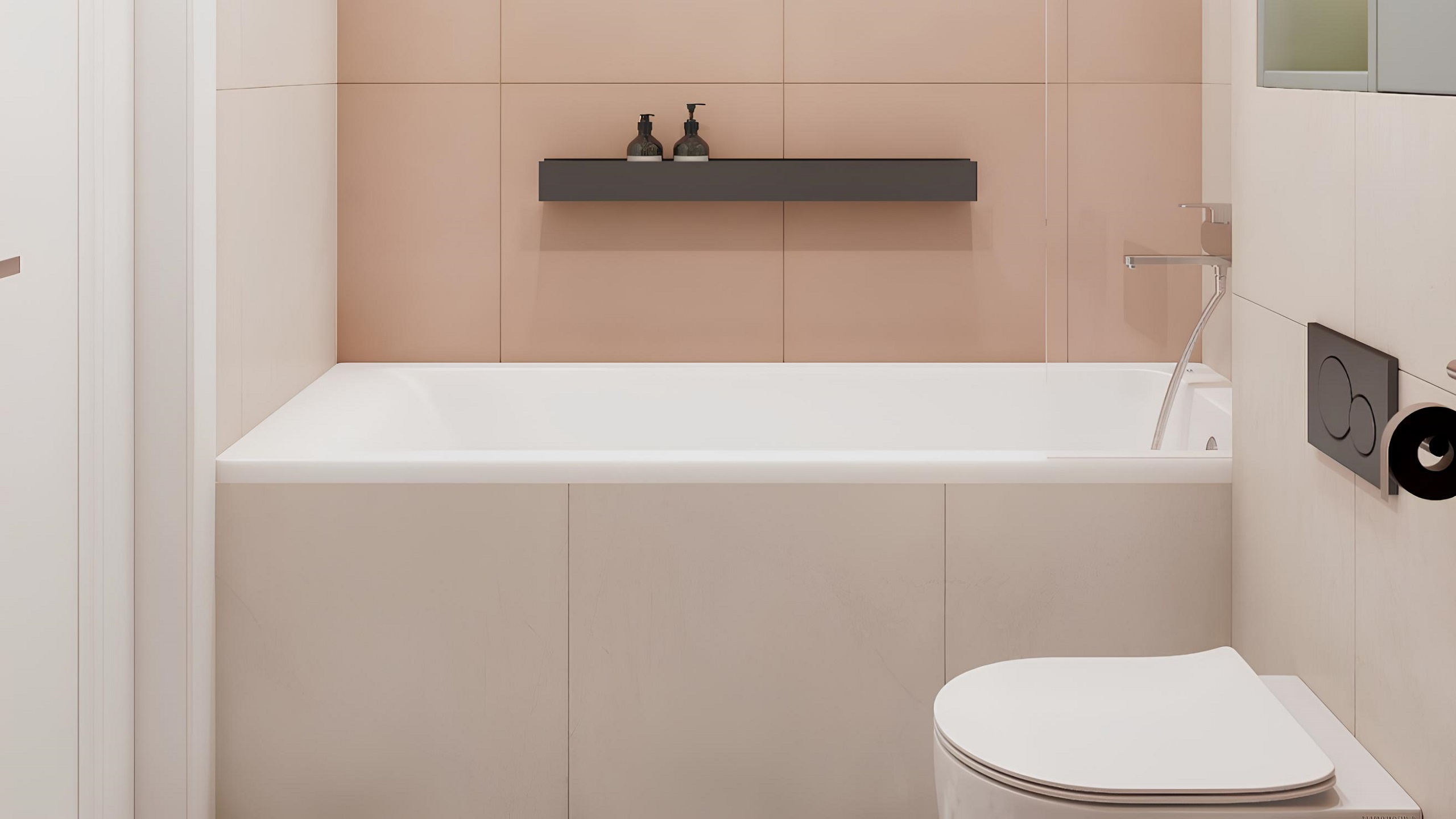 Когда речь идет о детской ванной комнате, эта особенность керамогранита Ametis by Estima становится особенно важной. Отчасти по этой причине, отчасти из-за нежного лососевого оттенка дизайнер Анастасия Игнатченко выбрала именно коллекцию Spectrum. Тон плитки позволил оформить пространство в легком, воздушном и нежном стиле.