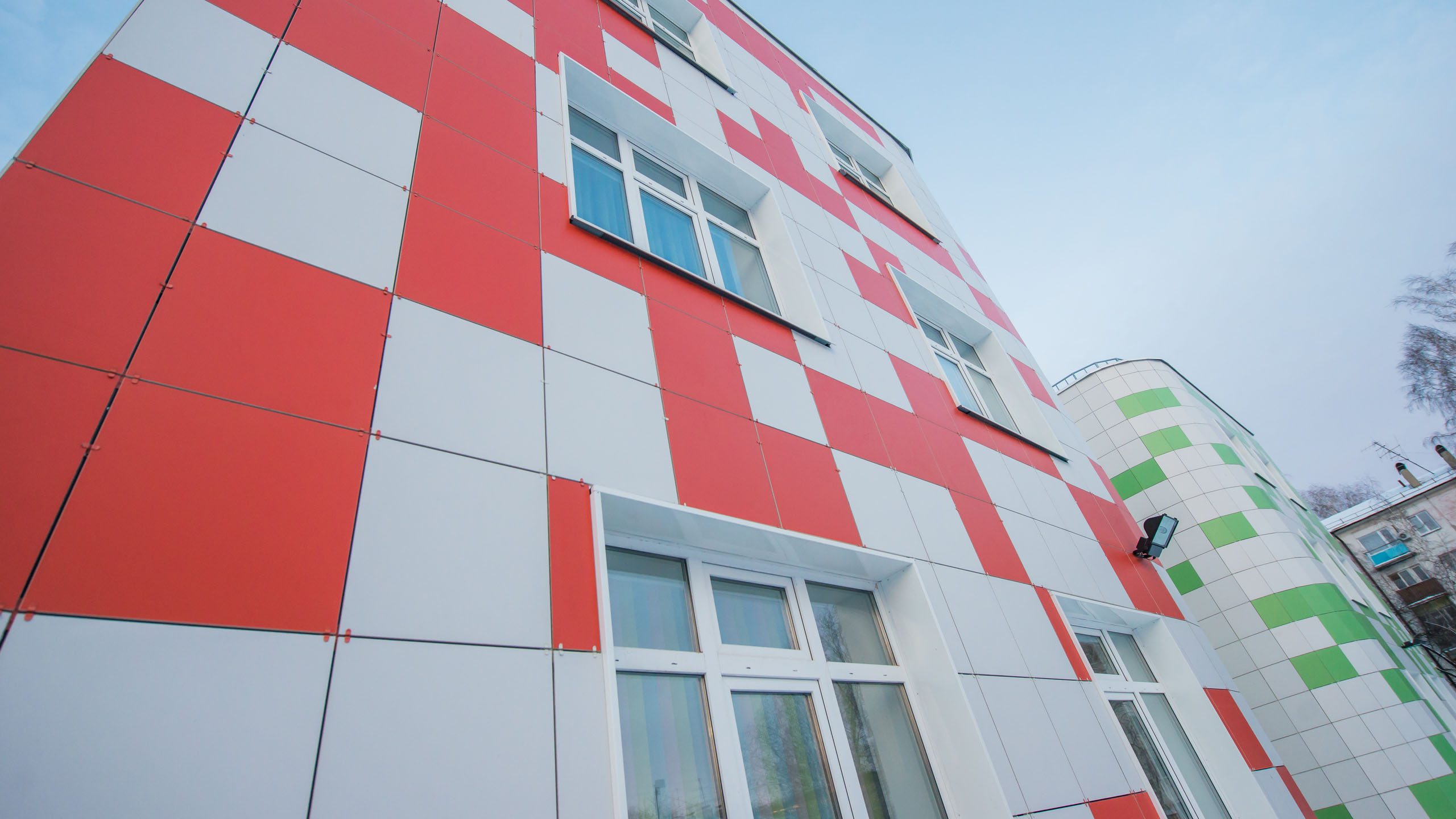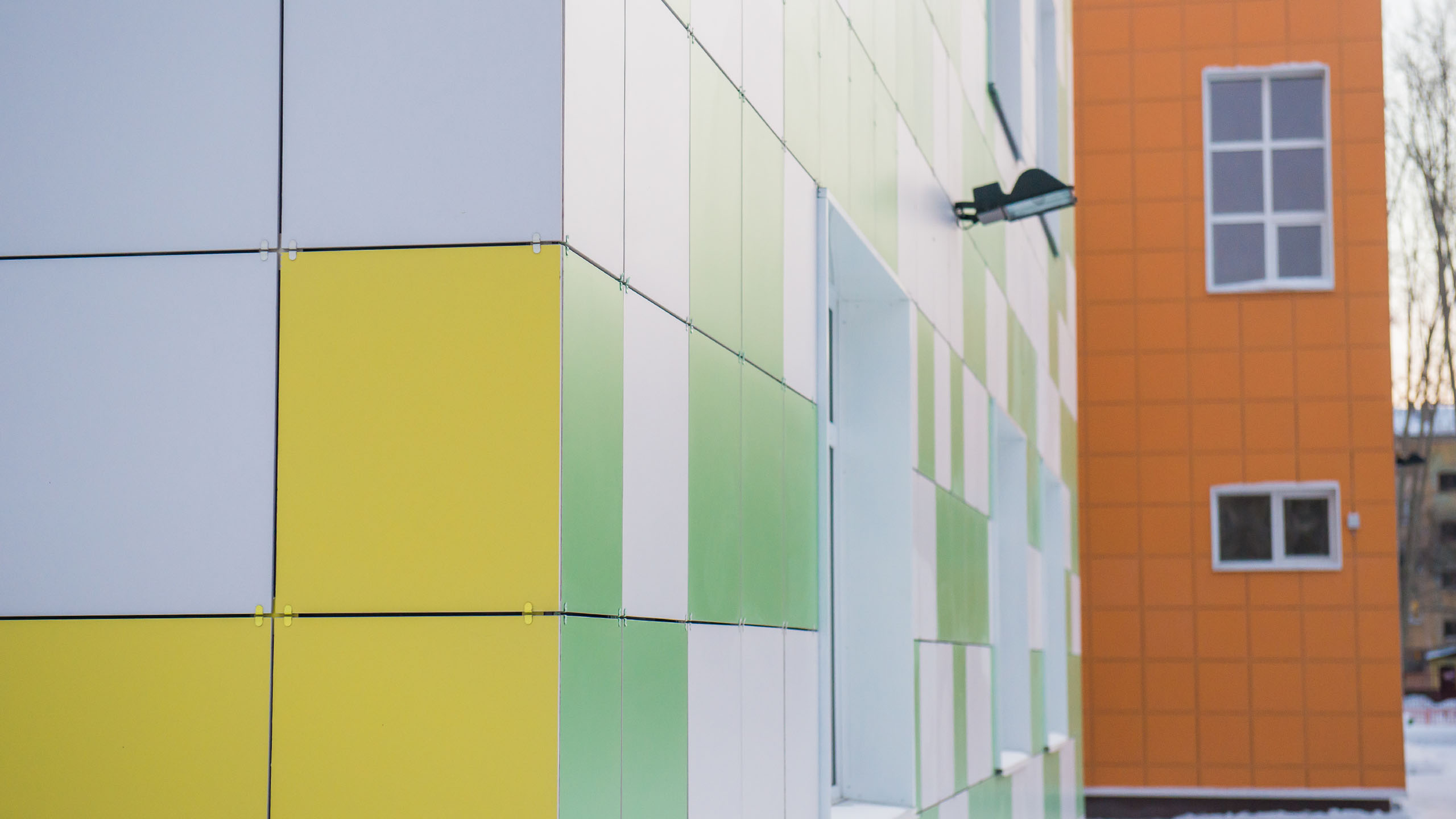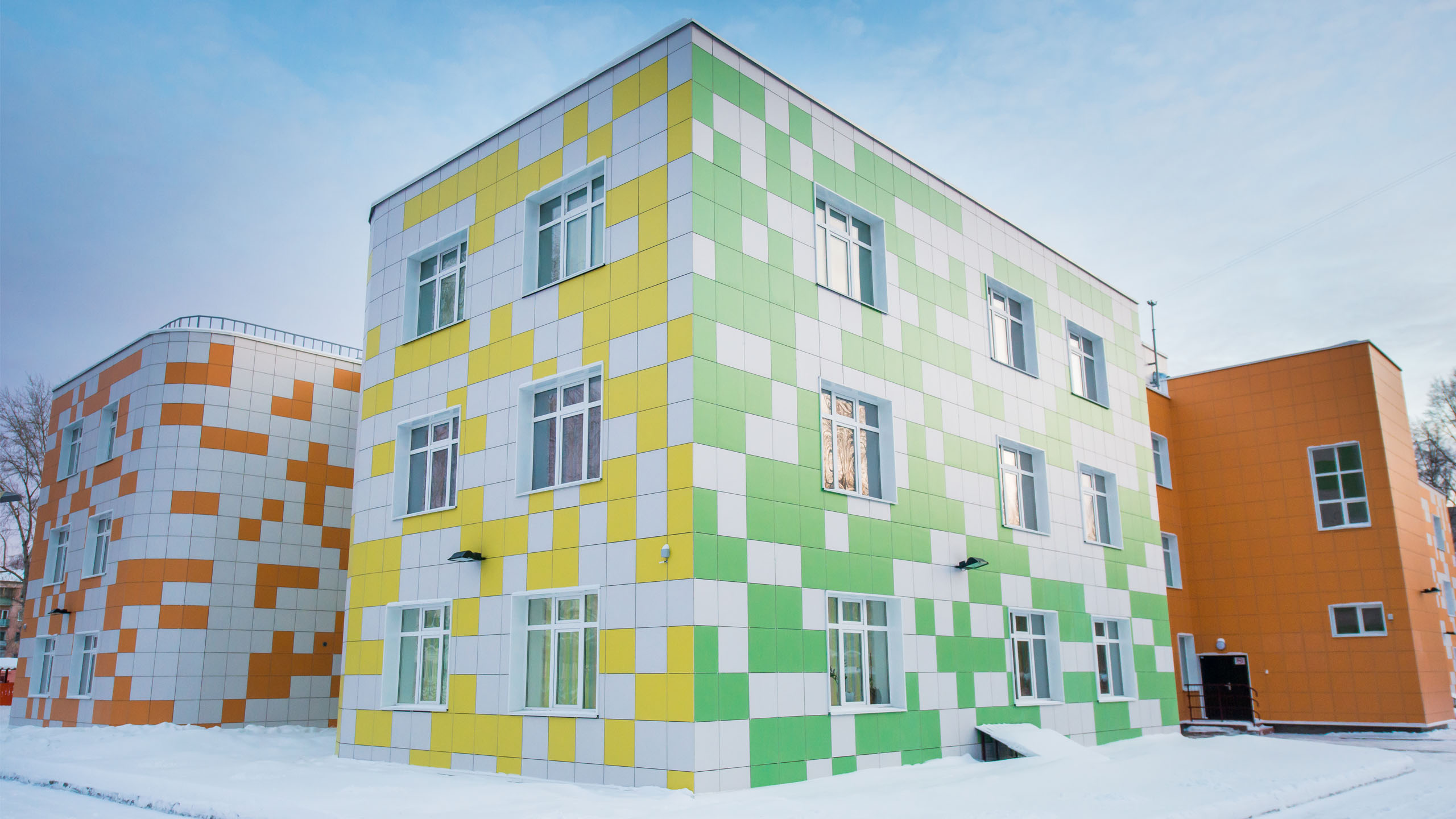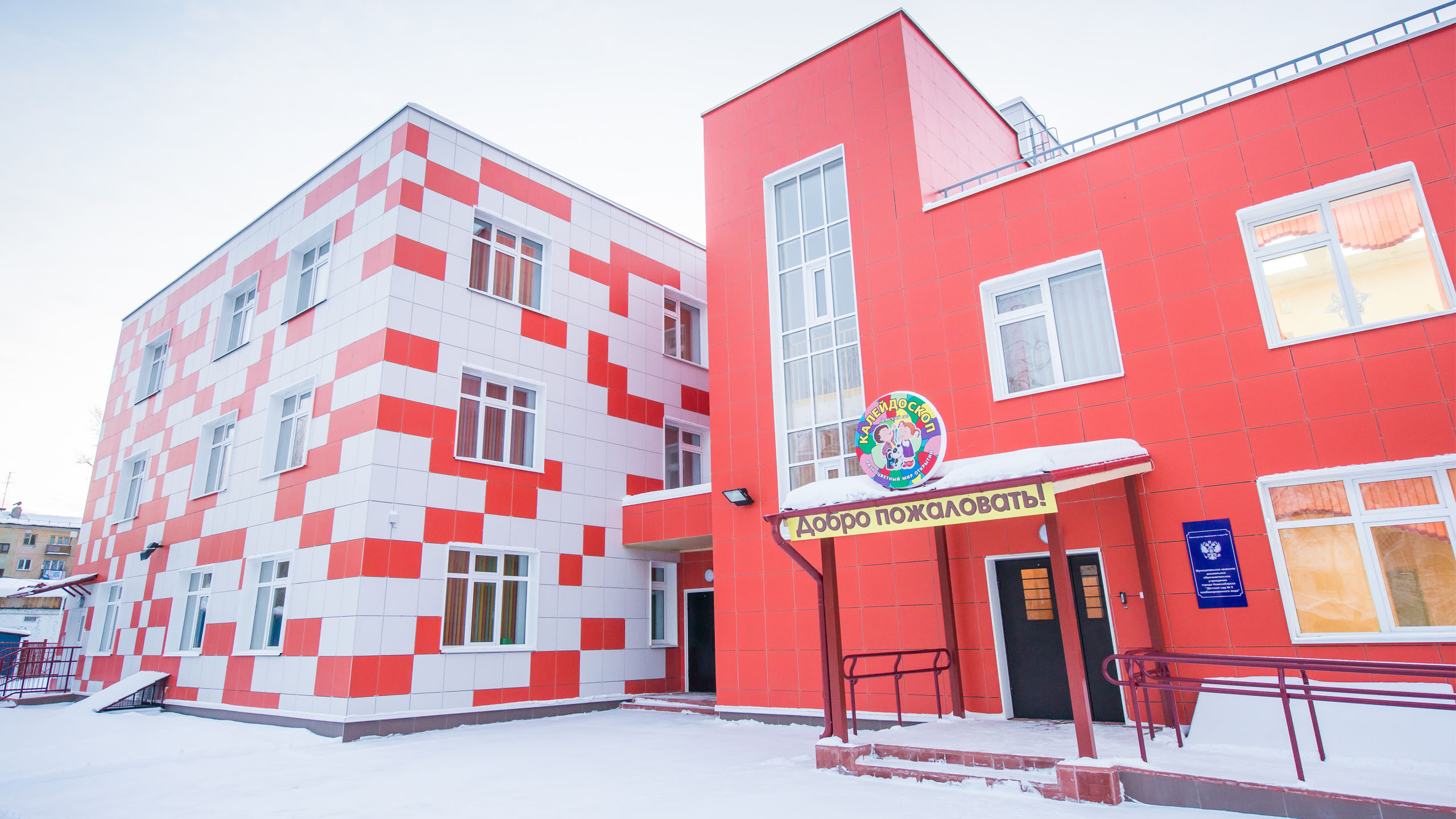 Уютный детский сад с яркой внешней отделкой.