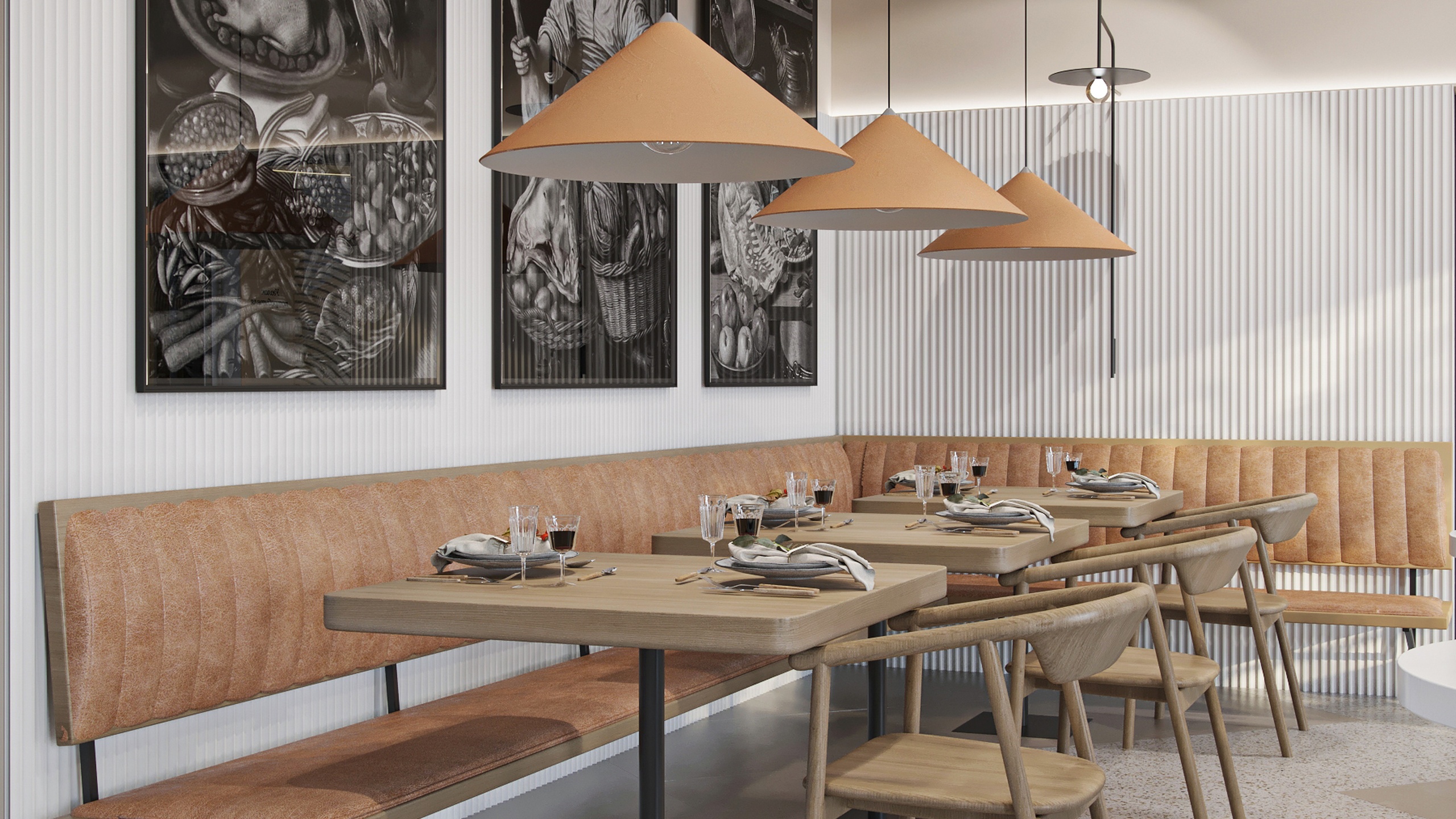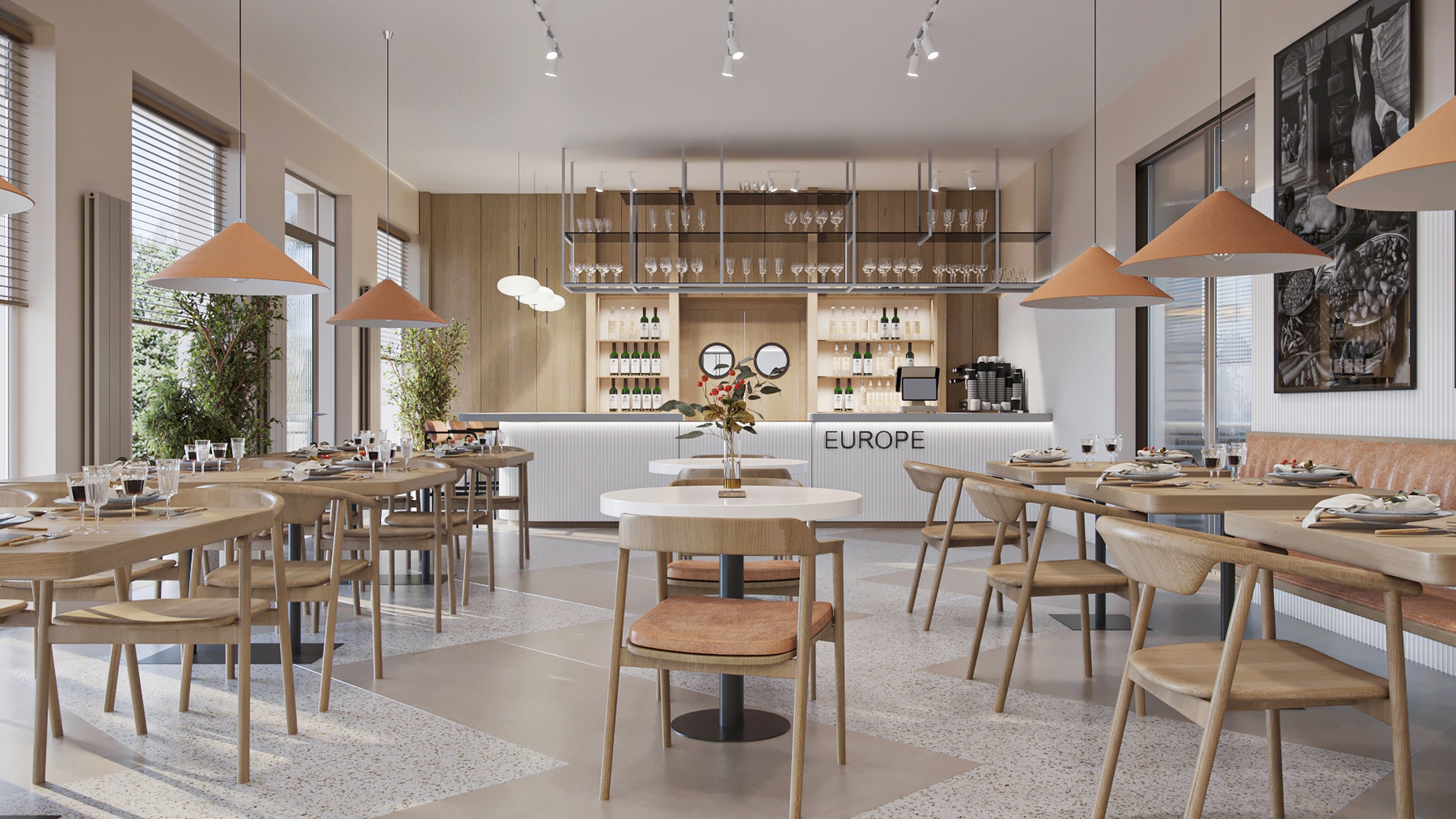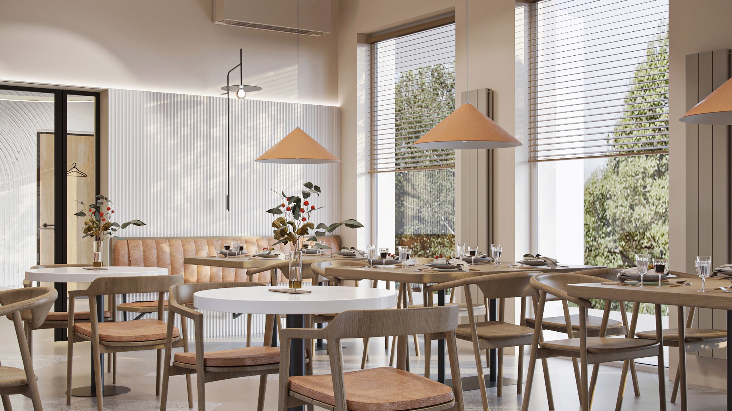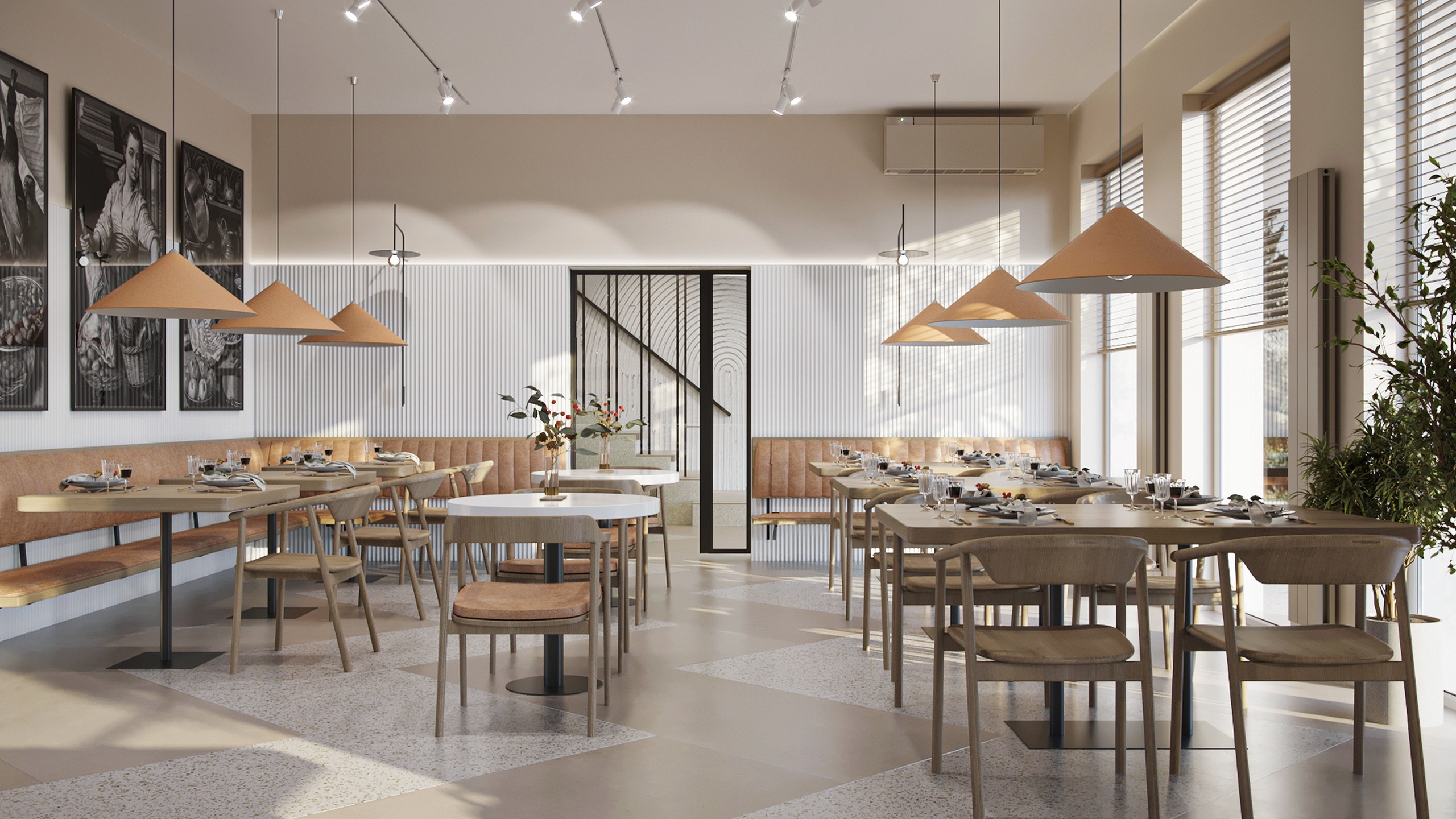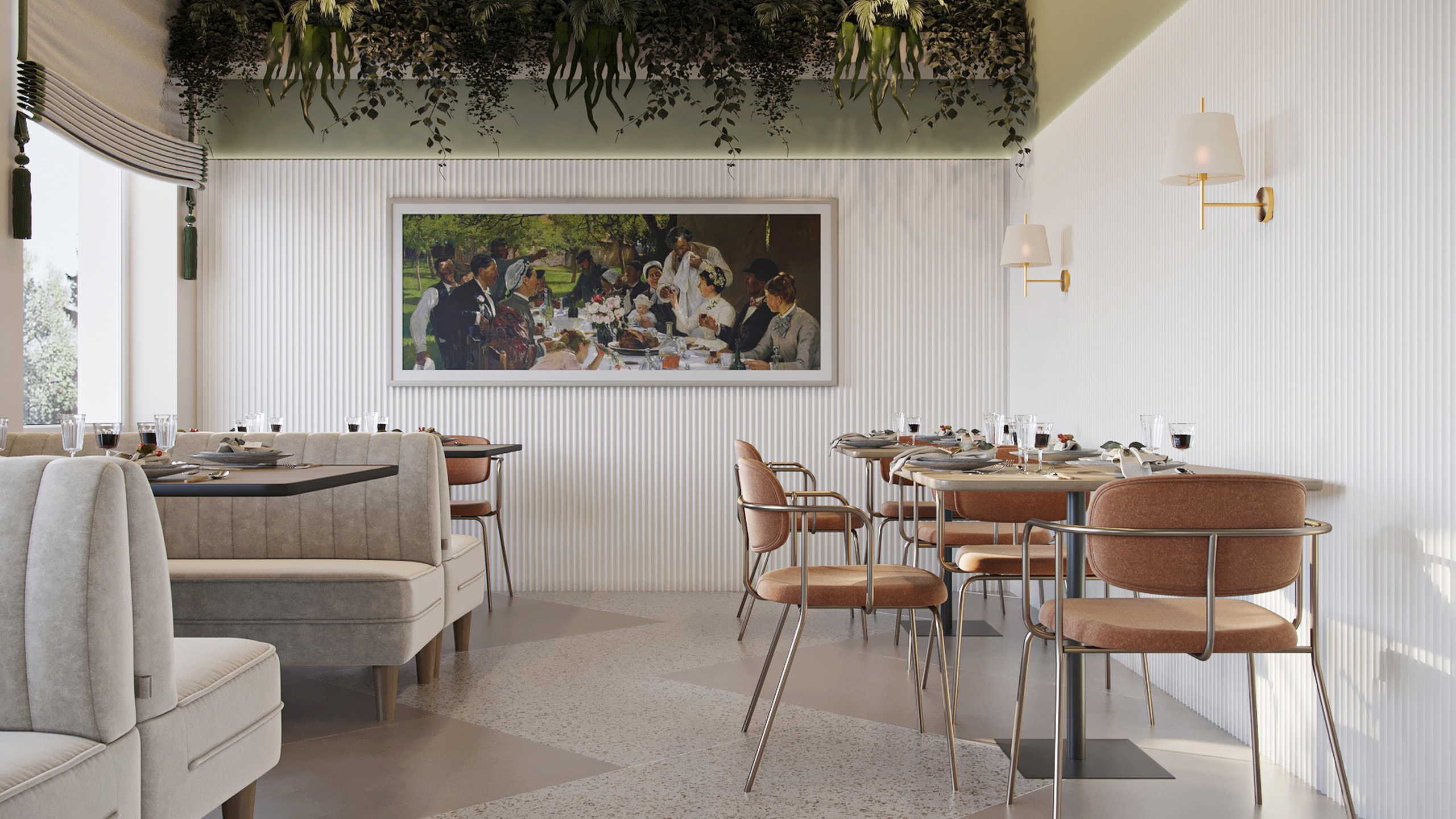 Это кафе — место, куда часто приходят местные жители и гости Нижнего Новгорода — столицы закатов. Здесь отмечают шумные праздники и встречаются уютными тихими вечерами, чтобы провести время наедине. Именно поэтому дизайнер Олеся Попова постаралась создать универсальный интерьер: элегантный, стильный, но сдержанный.