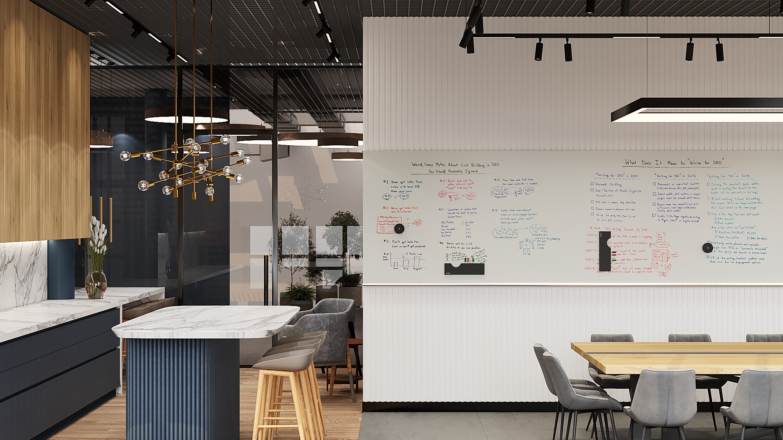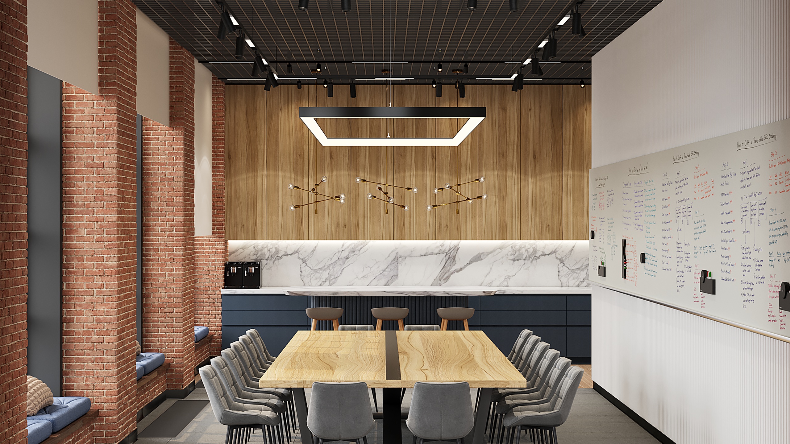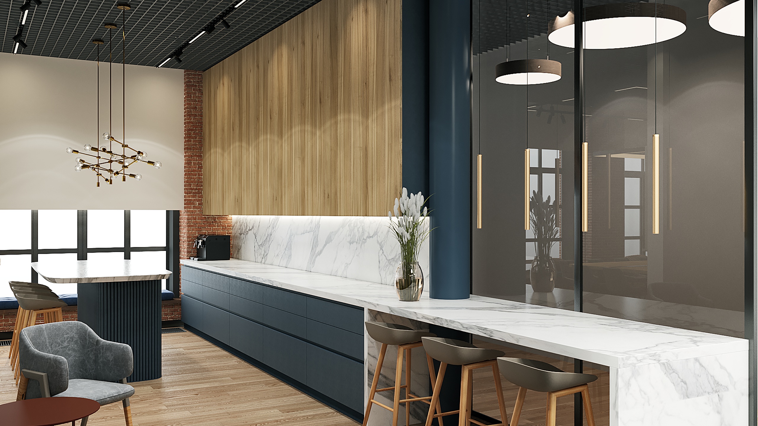 Интерьер офисной переговорной с coffee point