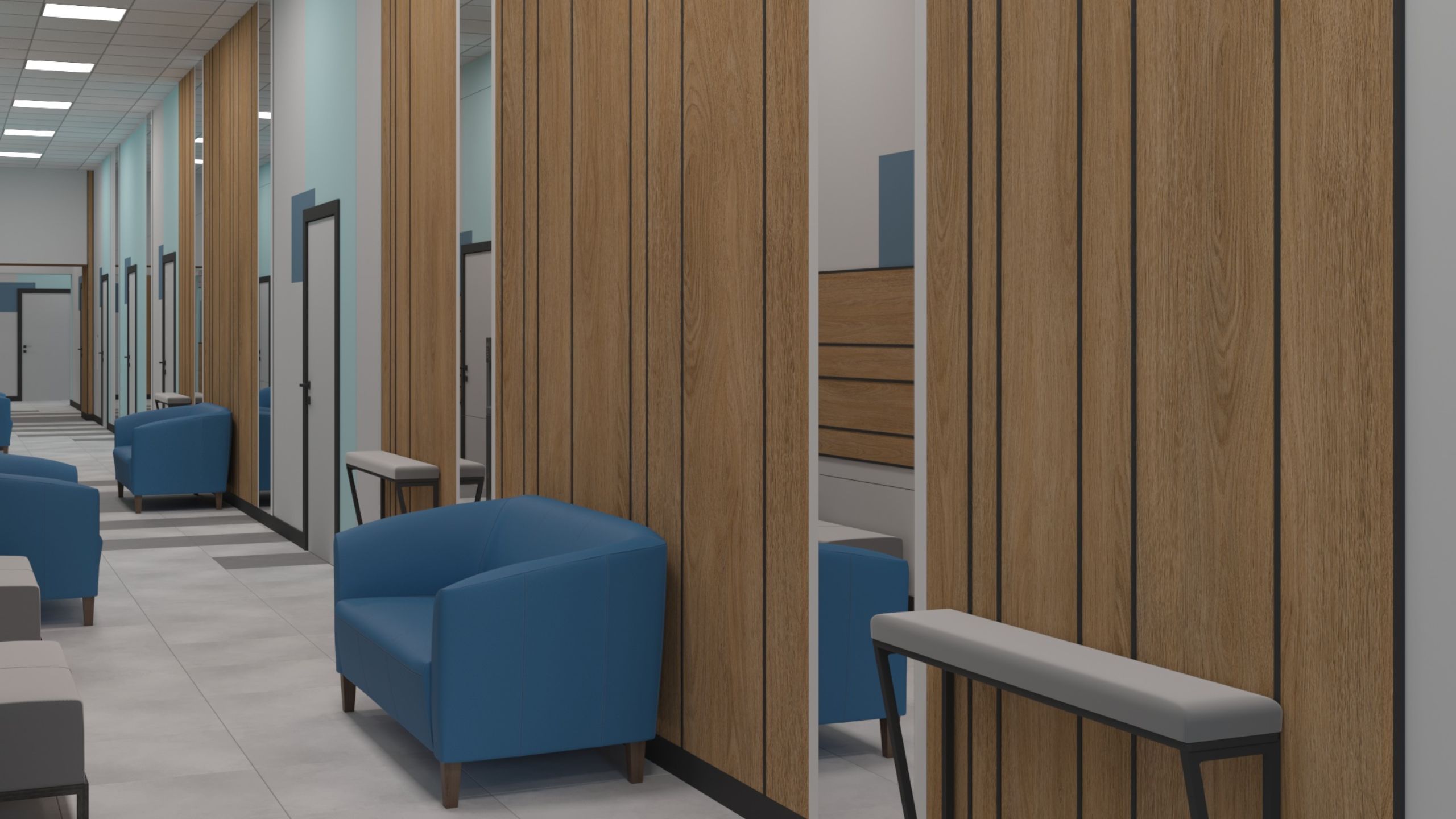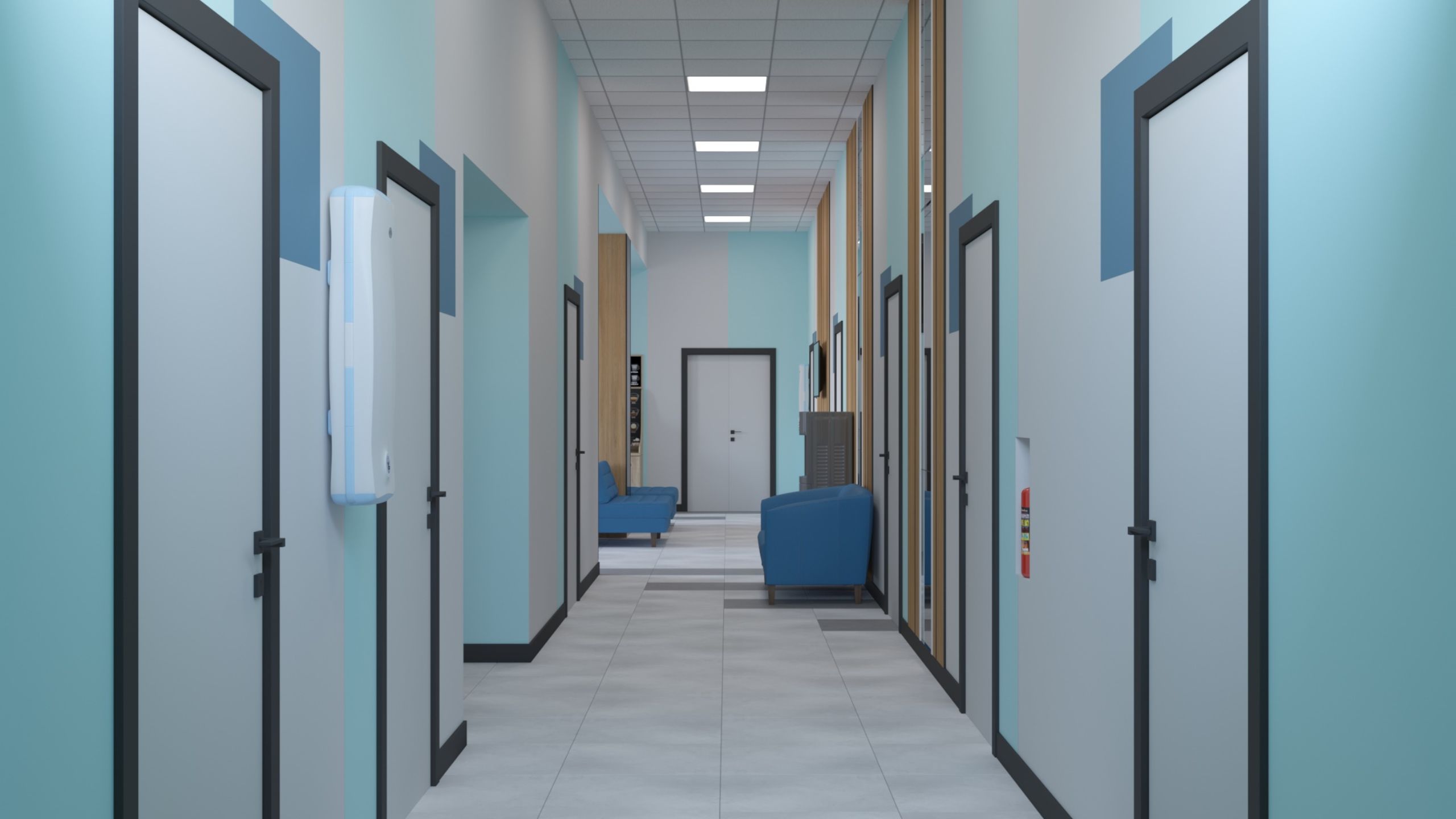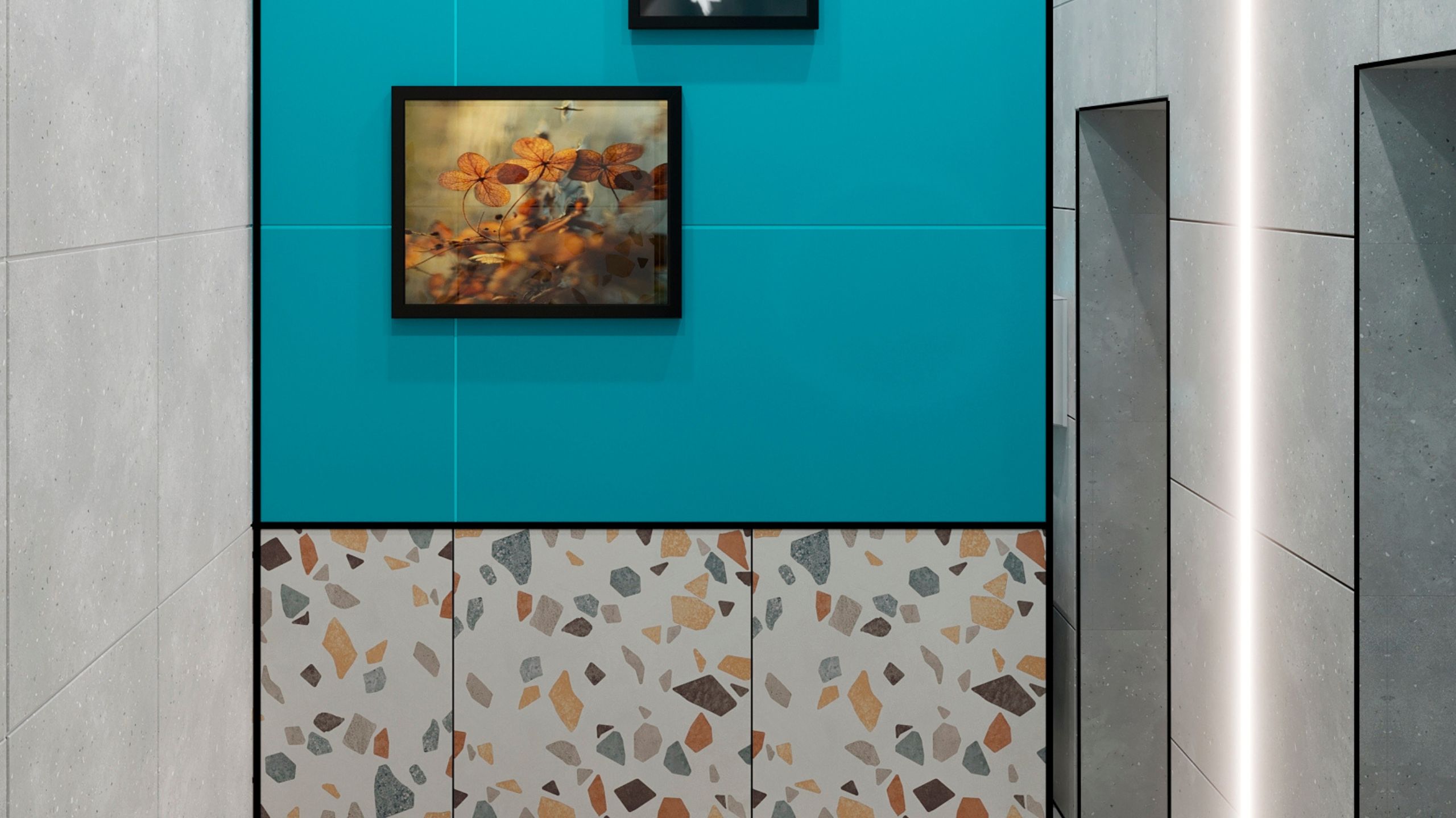 Дизайнер Наталья Мельникова создала функциональное, но при этом комфортное пространство, разработав проект одноэтажной медицинской клиники в Грозном. В нем использованы покрытия от компании Estima: керамогранит темно-серого оттенка, керамогранит светло-серого оттенка, керамогранит в стиле тераццо. На фото вы можете увидеть плитку из коллекций Traffic, Arti, Terra.