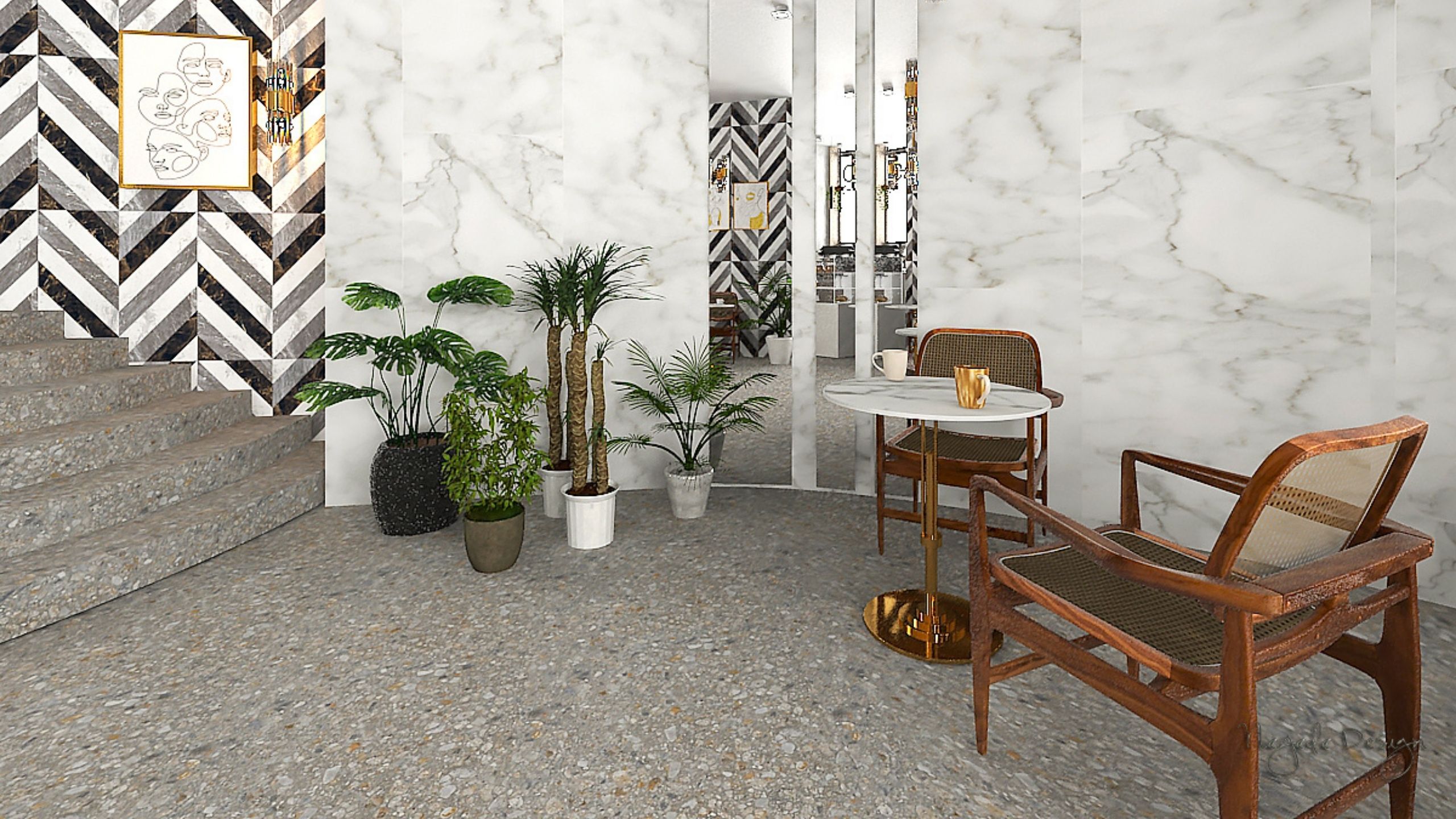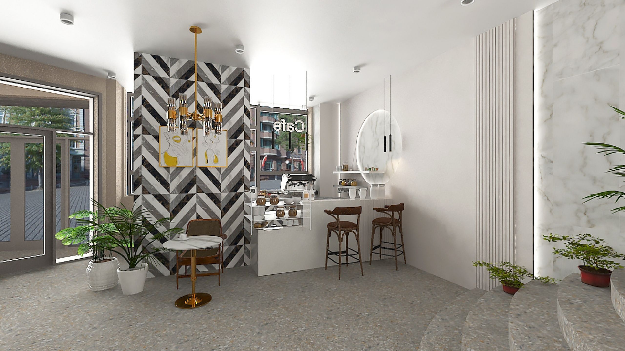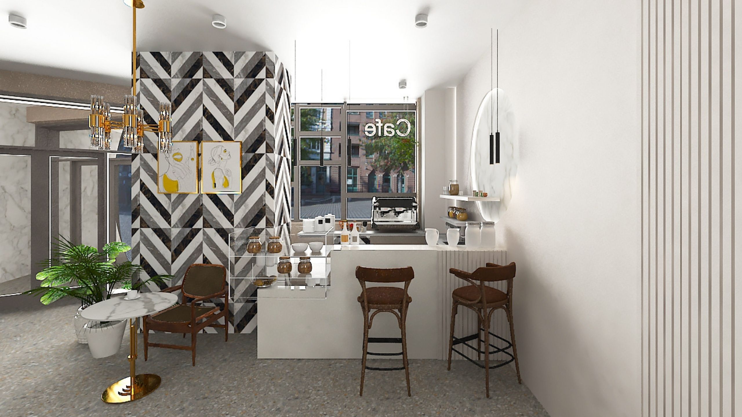 Дизайнер Надежда Смирнова приняла решение создать не просто интерьер кофейни, где будут варить вкусный кофе, но и продумать комфортные места для отдыха, приятных встреч и переговоров сотрудников и посетителей бизнес центра. Автор проекта интегрировала уже существующие полы тераццо из мраморной крошки в концепцию интерьера. Стены также оформили керамогранитом ТМ Estima из коллекции Alba, а колонны — коллекцией Chambord.